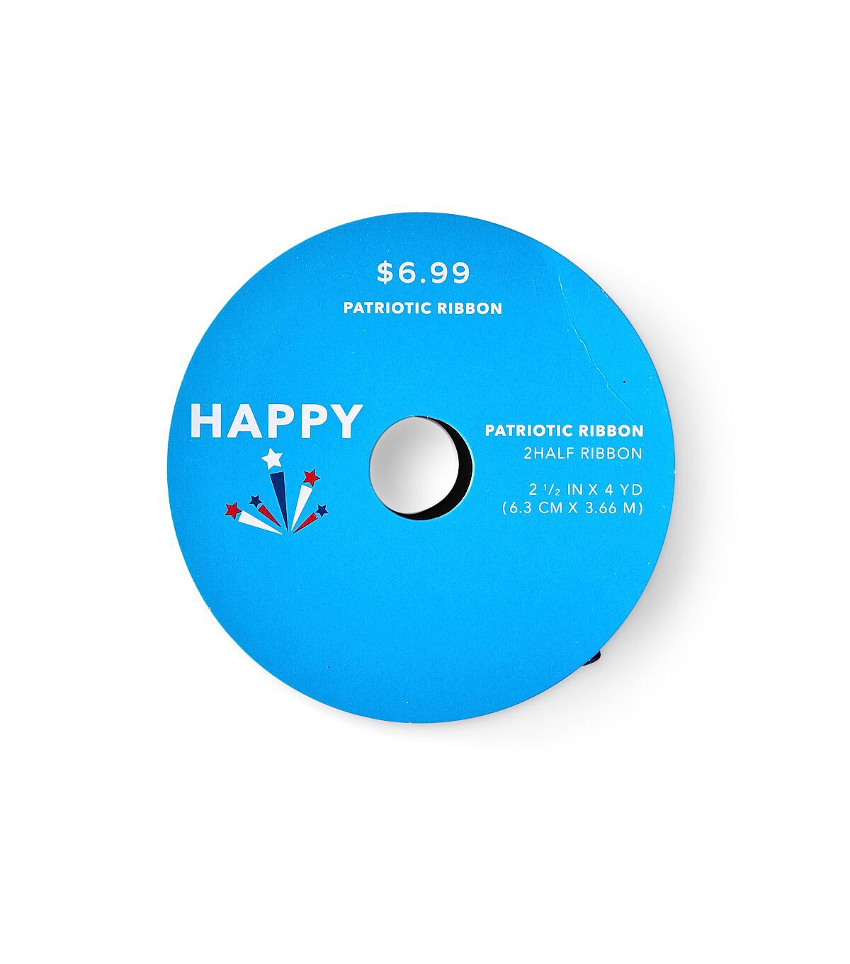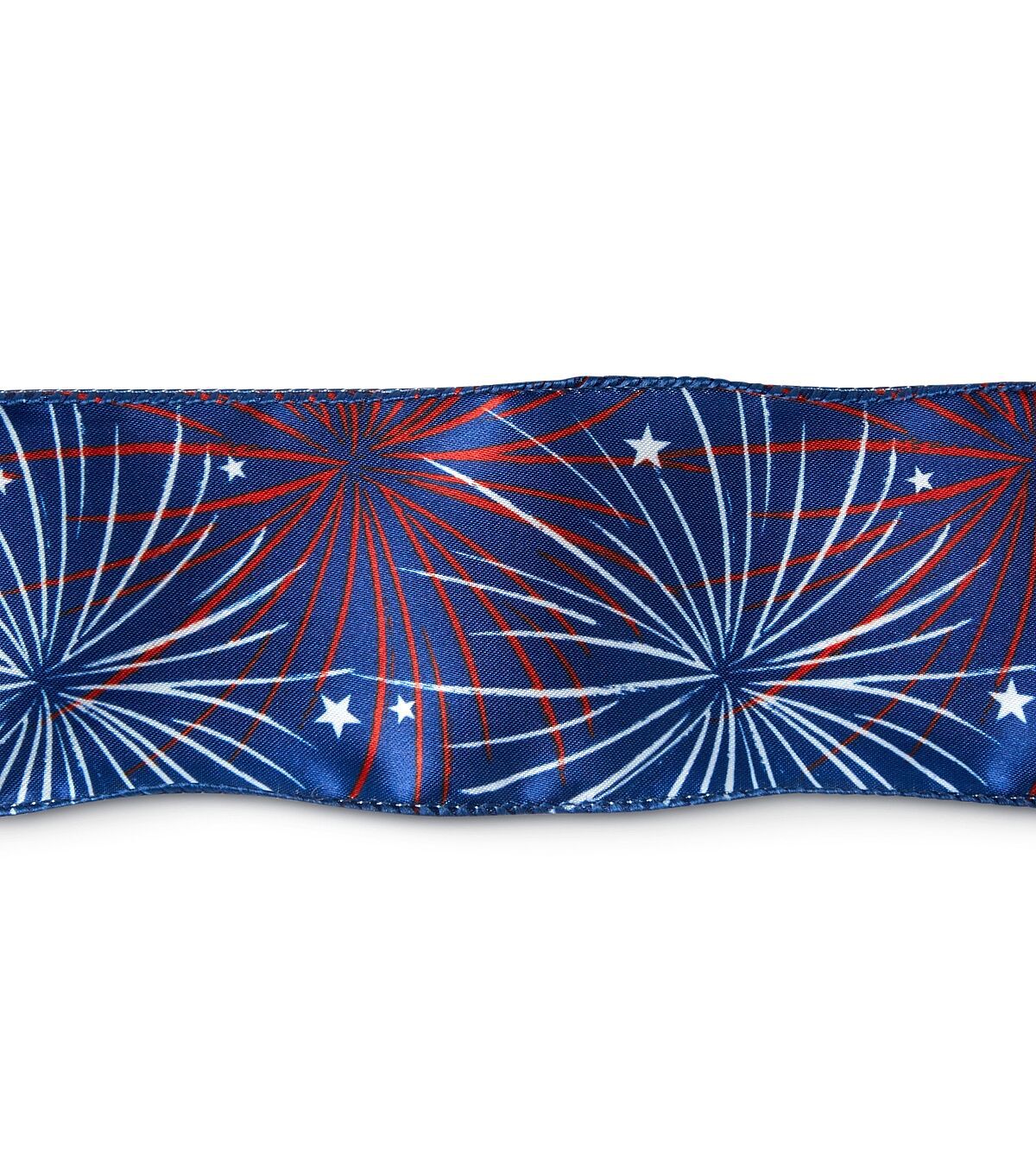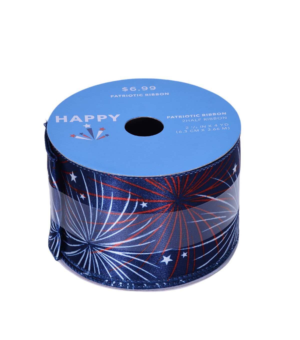 Happy Patriotic 2.5" x 12' Fireworks on Blue Satin Ribbon