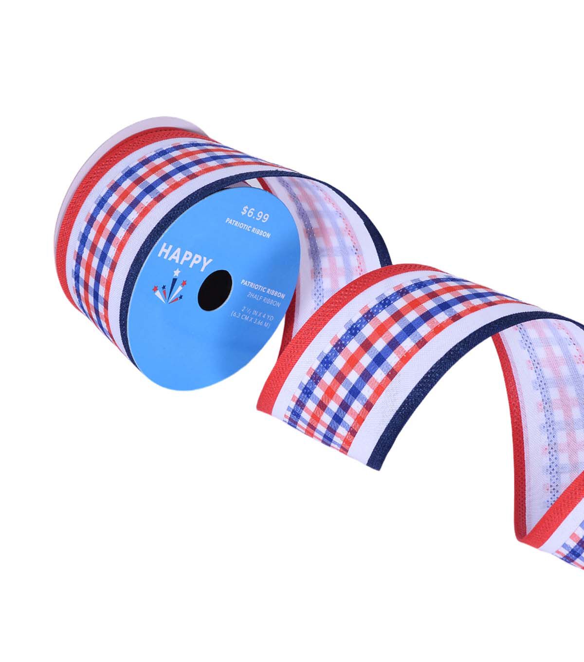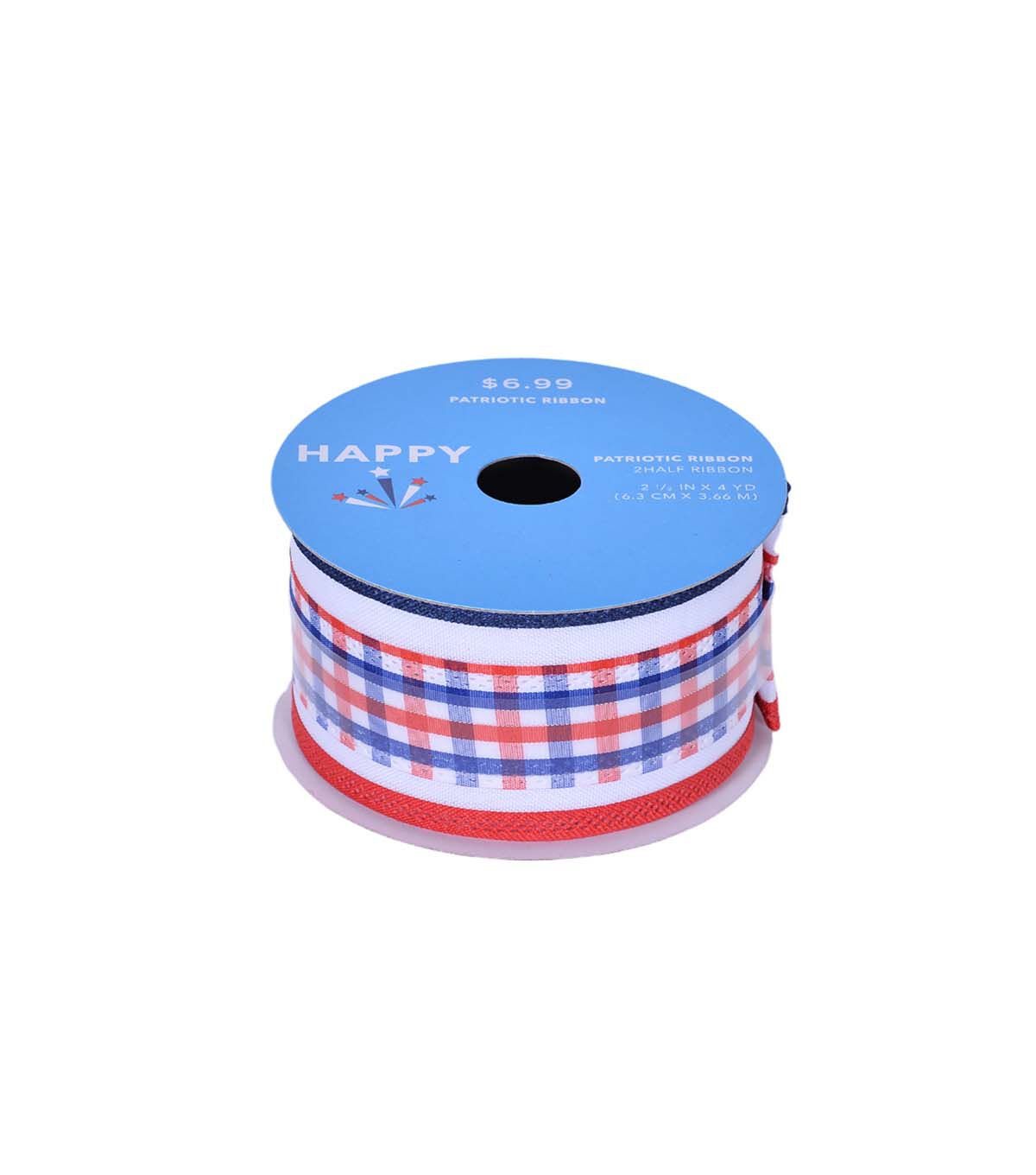 Get Festive with Happy Patriotic 2.5" x 12' Red White & Blue Plaid Ribbon