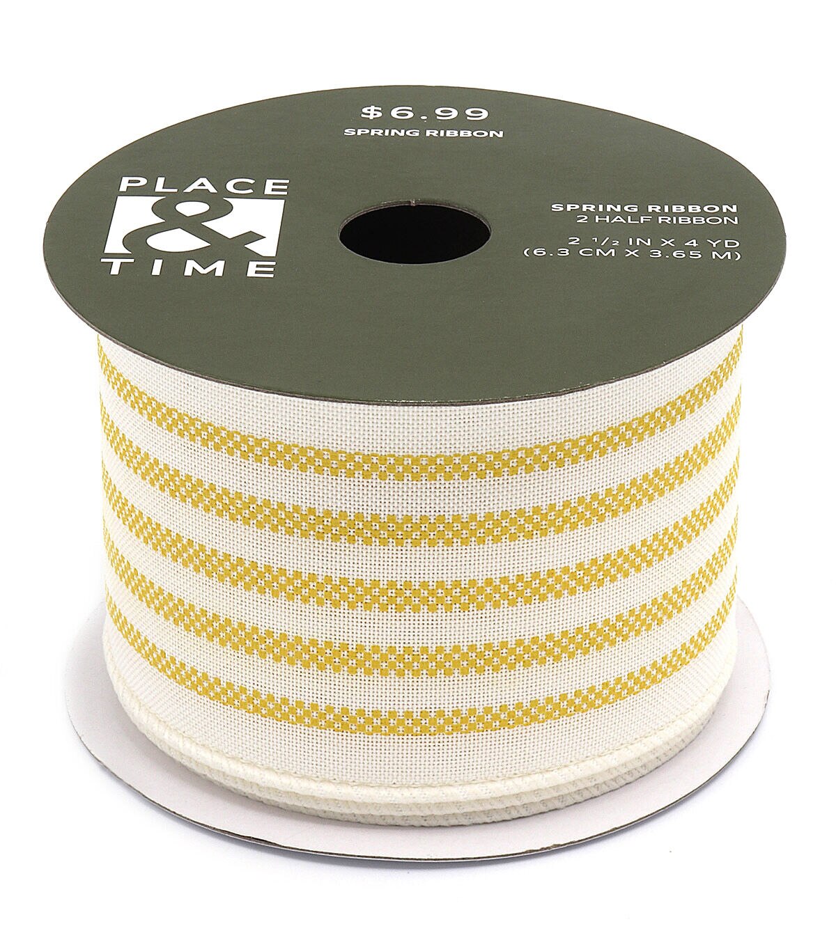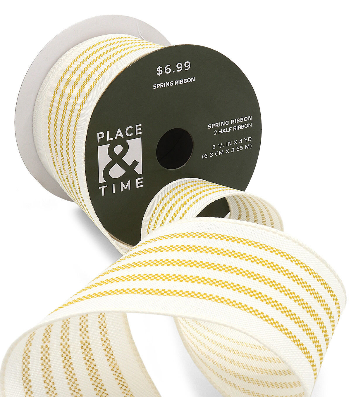 Embellish decor projects using the Spring Yellow & White Striped Ribbon by Place & Time. Displaying a striped pattern in yellow and white, this ribbon will give your creations a wonderful finishing touch. You can use it to decorate holiday gifts, favor bags, wall displays and floral arrangements. Create a ruffled wreath with it and display that on the front door or the entryway wall.