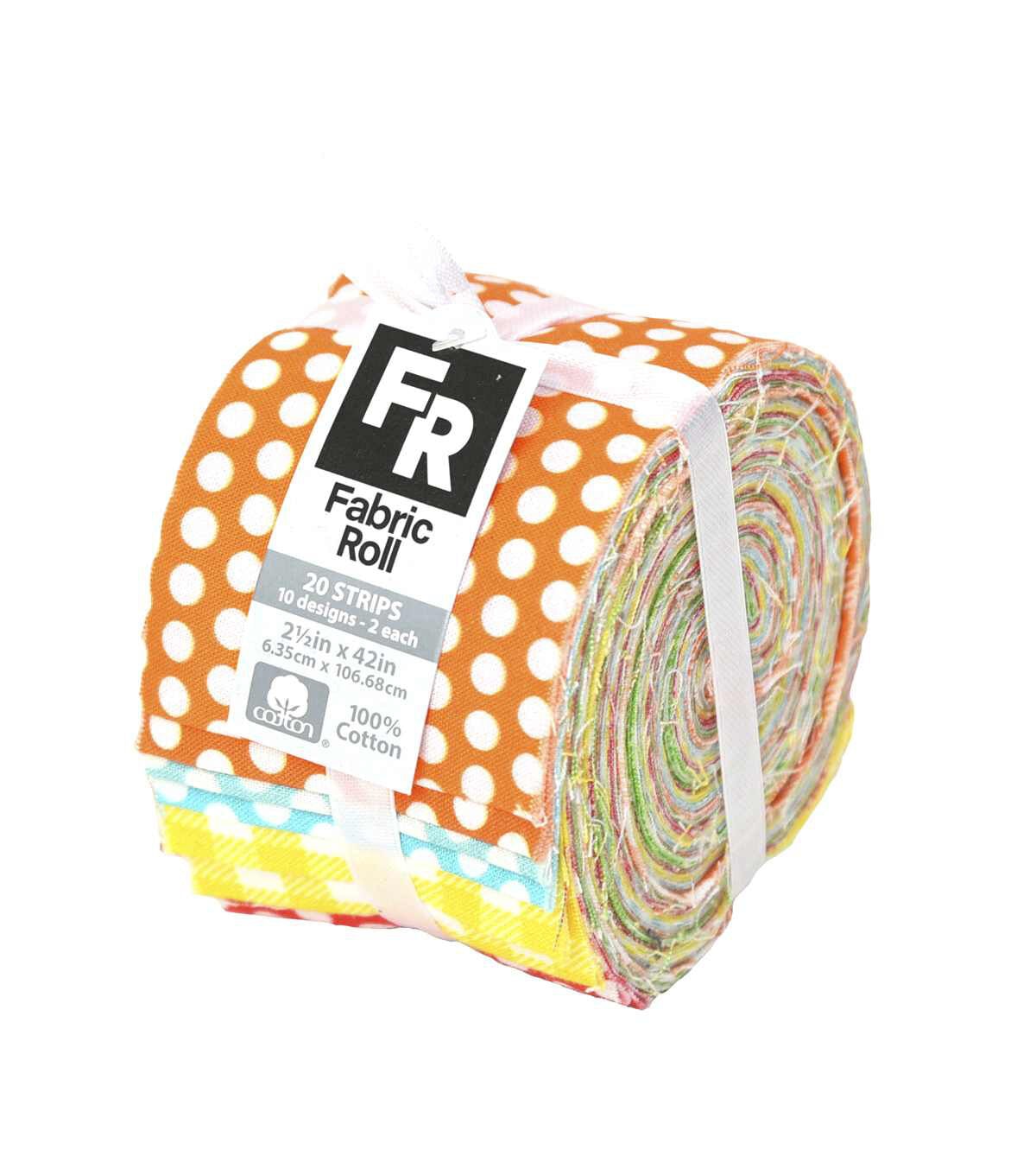 Expand your fabric collection with the Fabric Roll Cotton Fabric. This pack contains twenty, 2.5 x 42-inch, Fabric Roll fabric strips made of 100% cotton. The roll contains two pre-cut fabric strips each of 10 different tie-dye designs. Available in a variety of colorful themes, each sold separately.