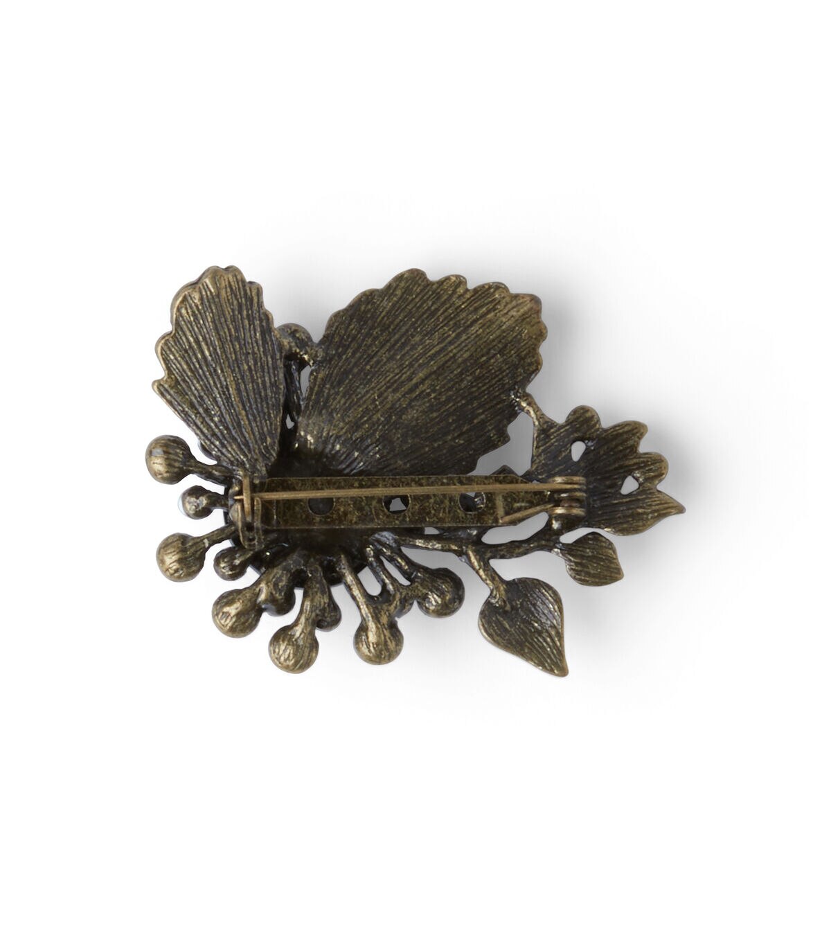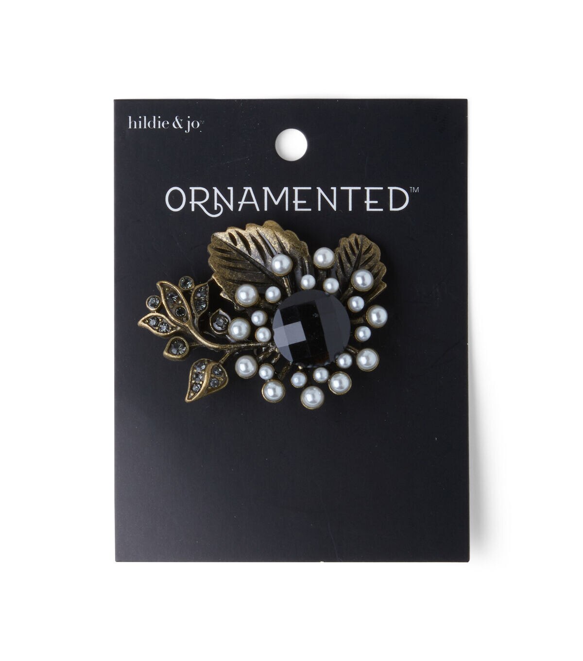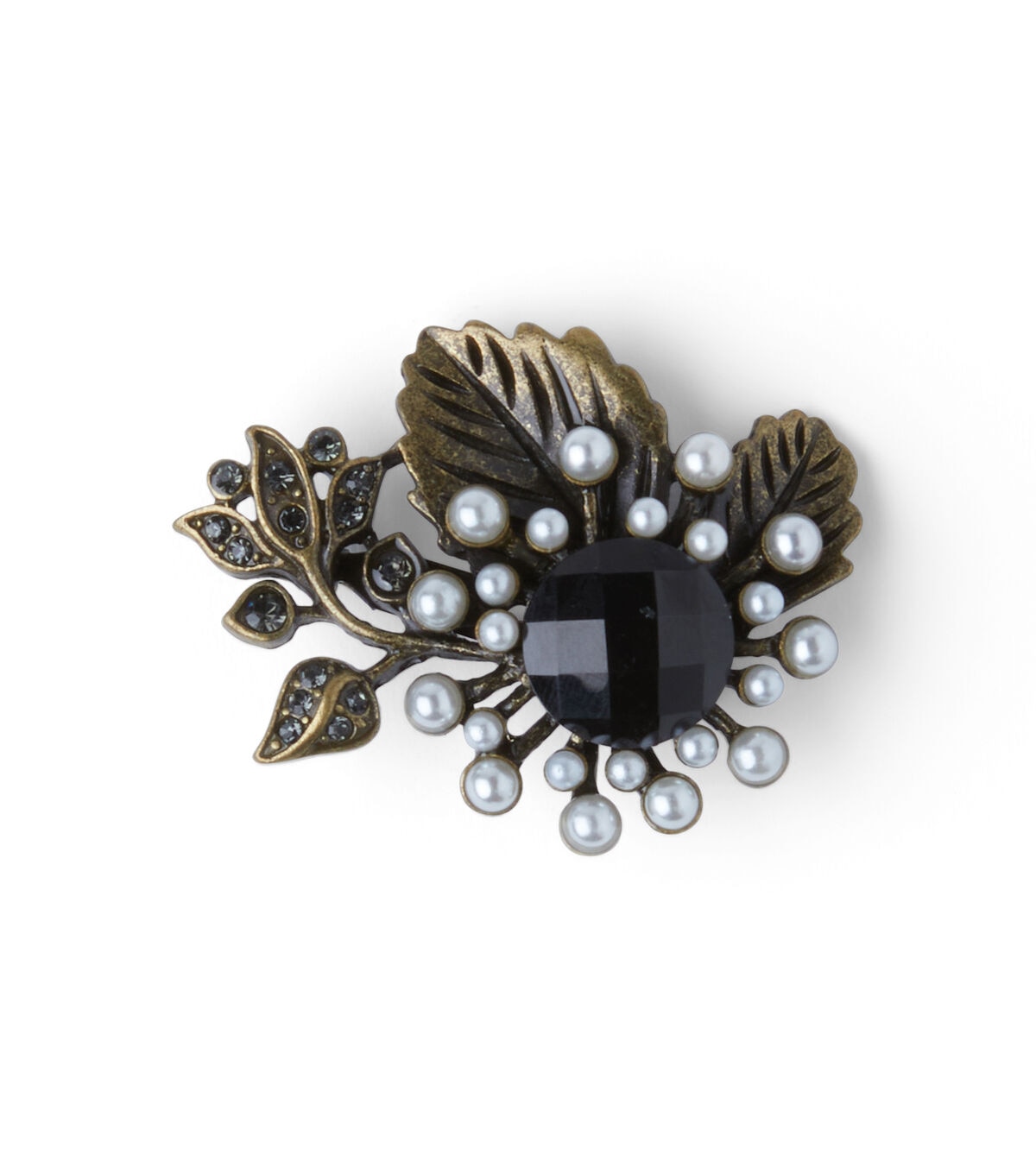 Accentuate your plain T-shirt or handbag with this hildie & jo Ornamented Flower/Leaves Antique Gold Brooch-Black Stone & Pearl. The brooch displays a large, round faceted black stone in the center surrounded by pearls and etched leaves at the top for visual beauty. You can also team it with other brooches to create a fascinating DIY design.