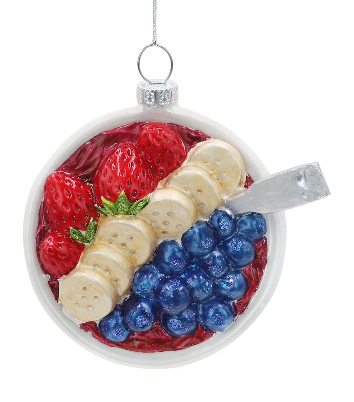 Showcase the Christmas Acai Bowl Glass Ornament by Place & Time on the holiday tree to encourage healthy eating in the coming year. This ornament resembles an acai bowl that is filled with strawberries, blueberries and bananas. The lovely colors and touch of glitter add to its charm. You can team it with other food-themed ornaments to create an interesting display.