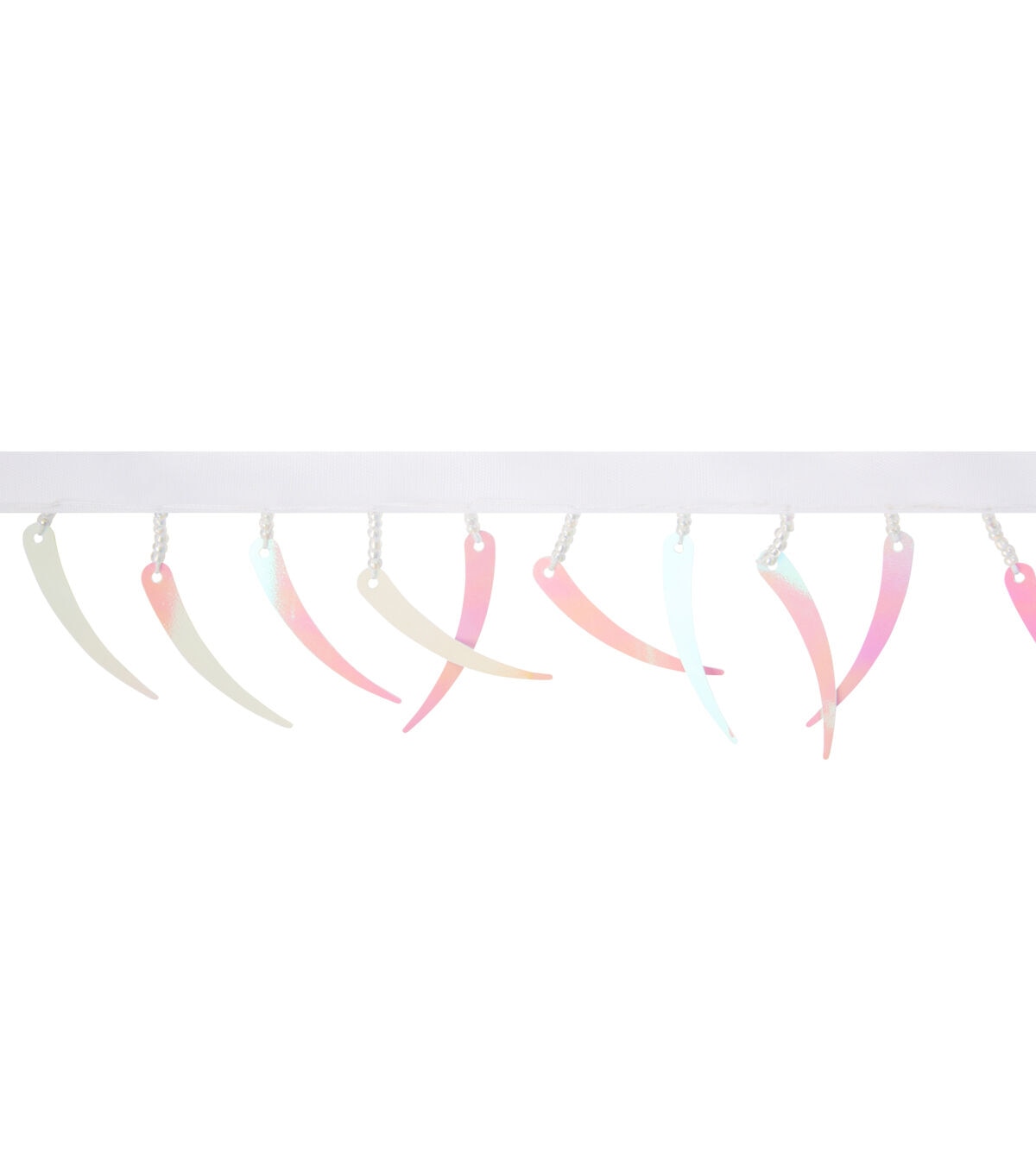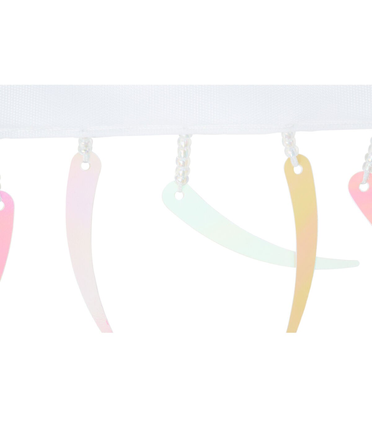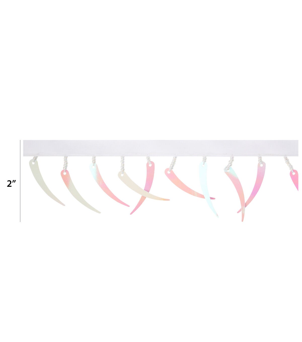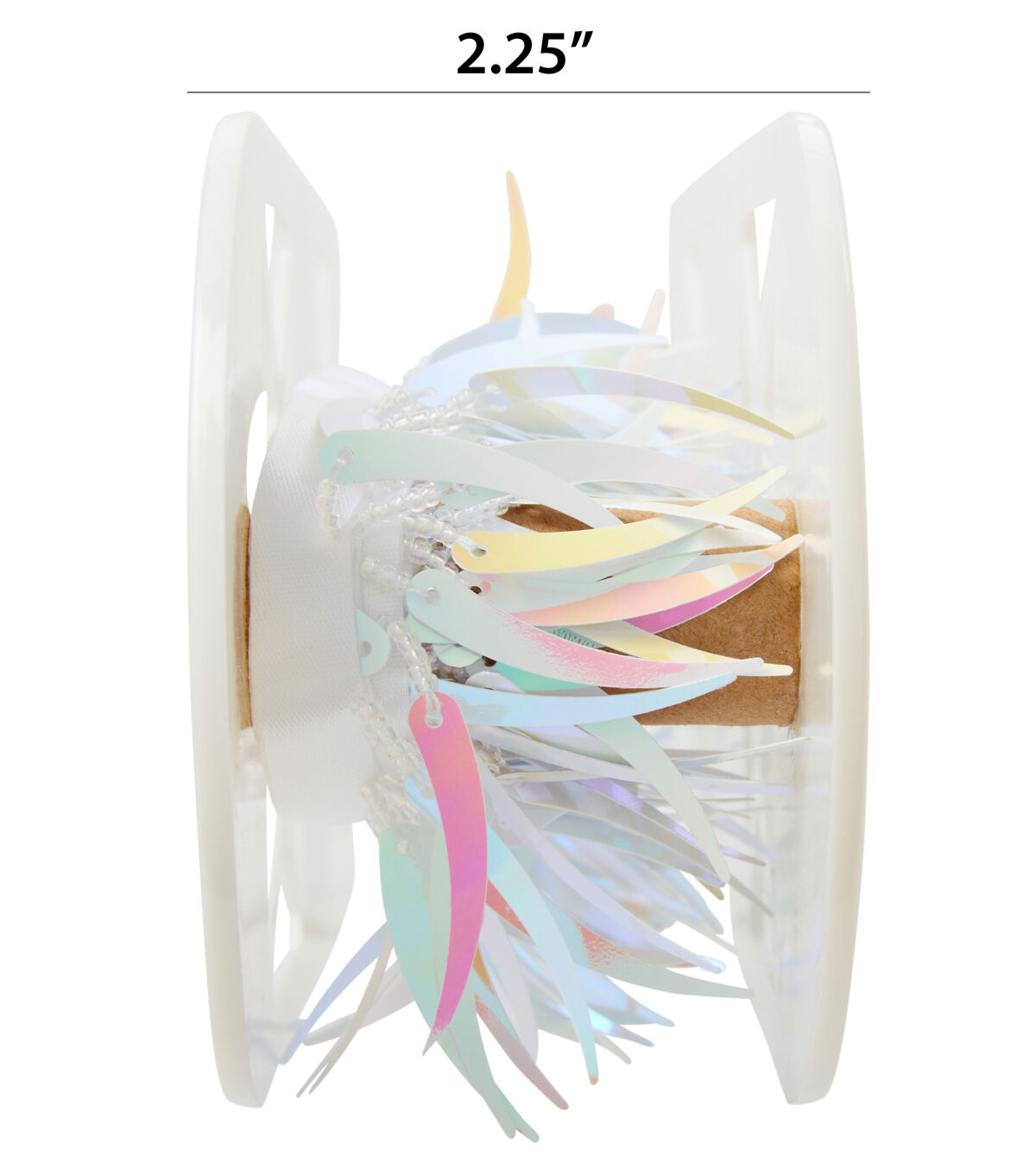 Add visual flair to a handmade fabric tote or lampshade using the Simplicity Crescent Trim-White Iridescent. You can also use it to decorate your papercrafting projects.