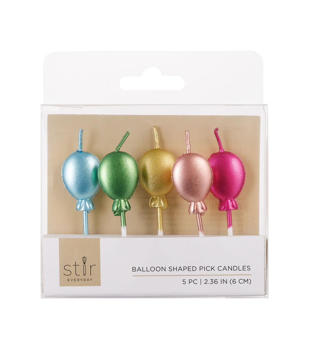 The STIR Everyday Balloon Shaped Pick Candles - Metallic will make a unique addition to your birthday party supplies. These candles are shaped like a balloon and sport lovely hues with a metallic finish. Use them to prettify your little one's birthday cake or add a fun element to any other celebration. You can easily place them on cakes, cupcakes and other baked treats.