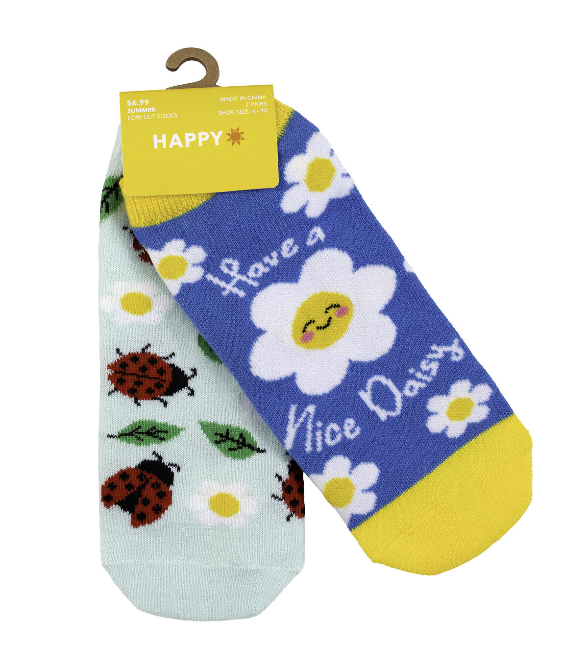 Get Playful with 2 Pair Happy Spring Daisy & Ladybug Low Cut Socks