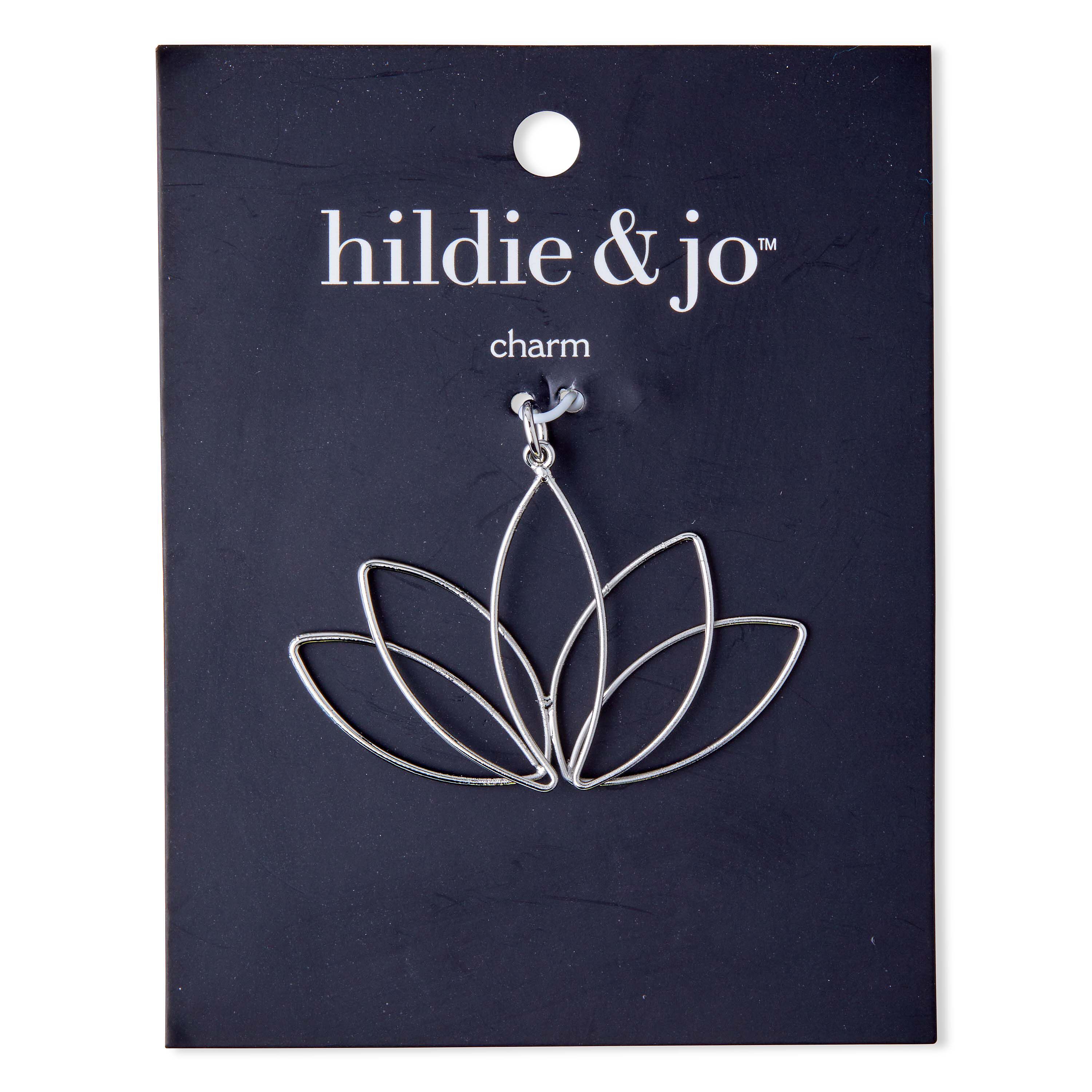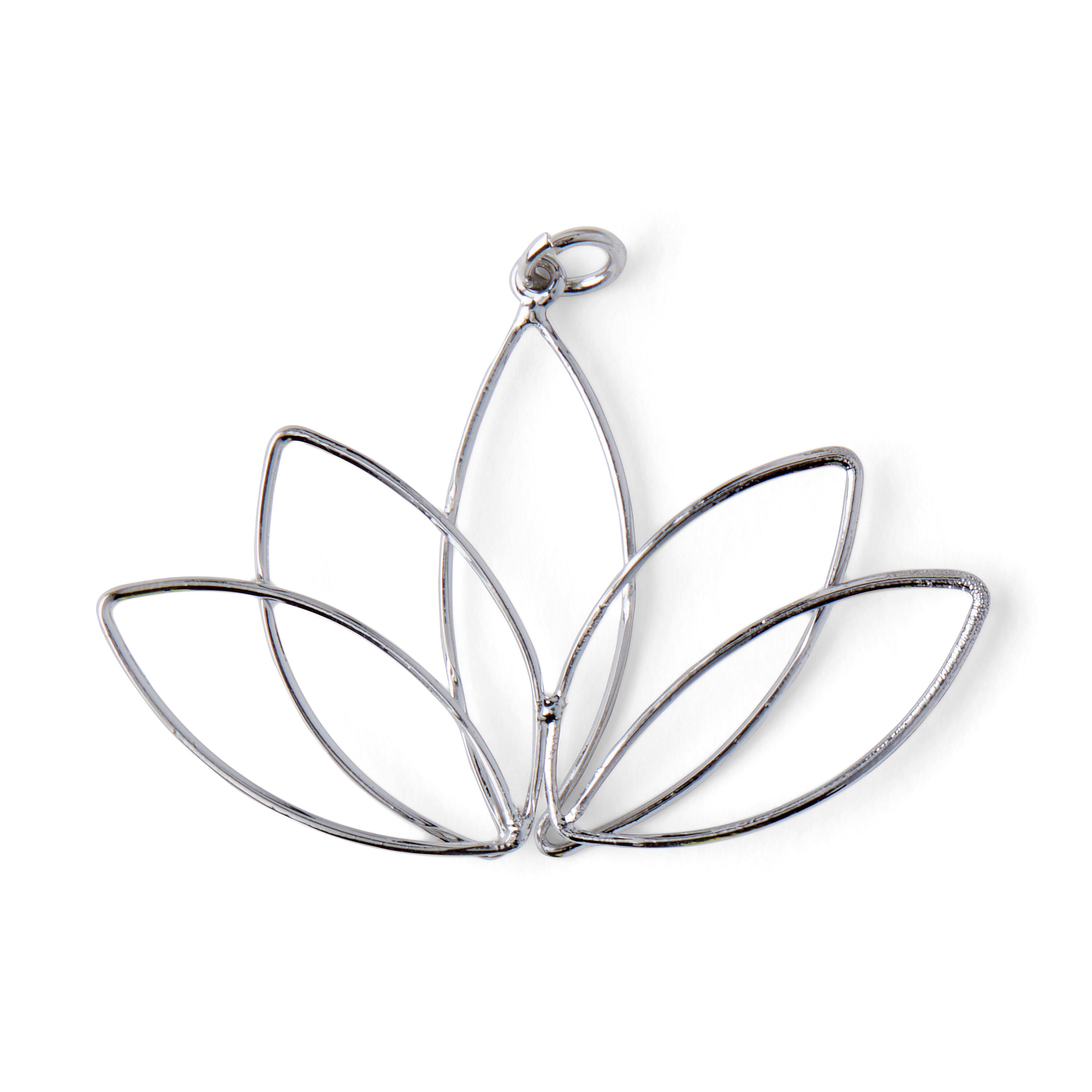 Make your jewelry and craft projects stand out by adding this hildie & jo Metal Open Lotus Flower Pendant-Silver. This smooth silver pendant is in the shape of an open lotus flower. There is a jump ring at the top for easy attachment. Add this pendant to bracelets, necklaces, keychains and more.