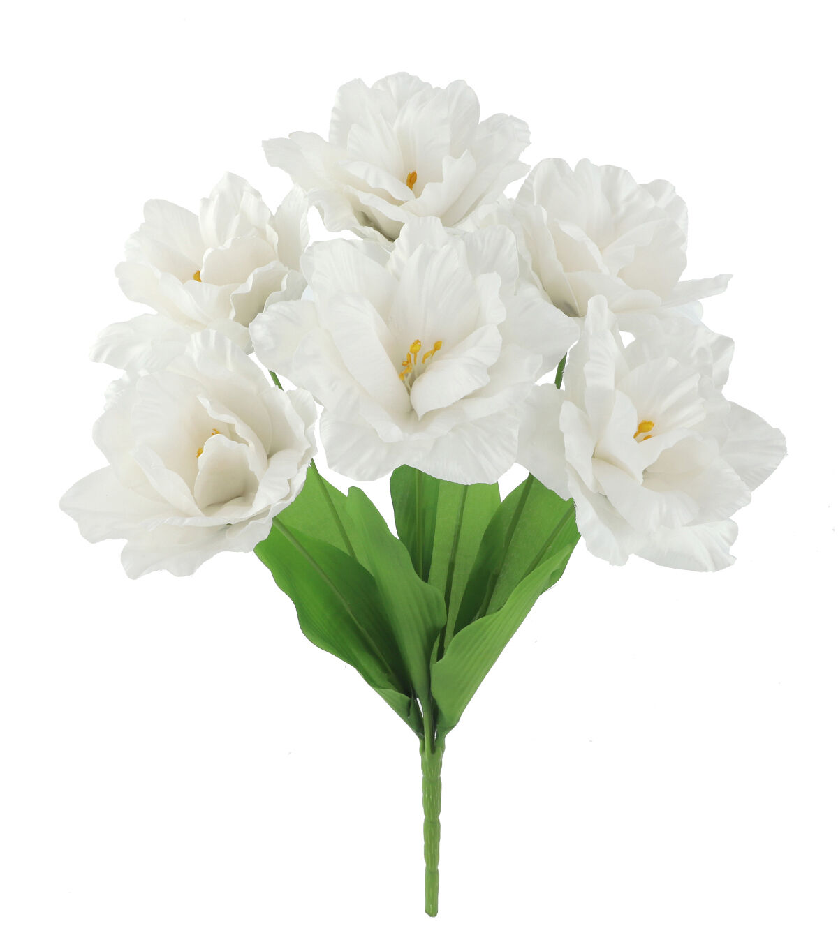 Introduce a bit of floral love to your home this spring with the Spring White Opened Tulip Bush by Bloom Room. This eye-catching faux bush is crafted with bloomed white tulips and realistic green leaves. Team it with rose or peony stems, sold separately, and arrange them in a glass vase to create a stunning tabletop centerpiece.