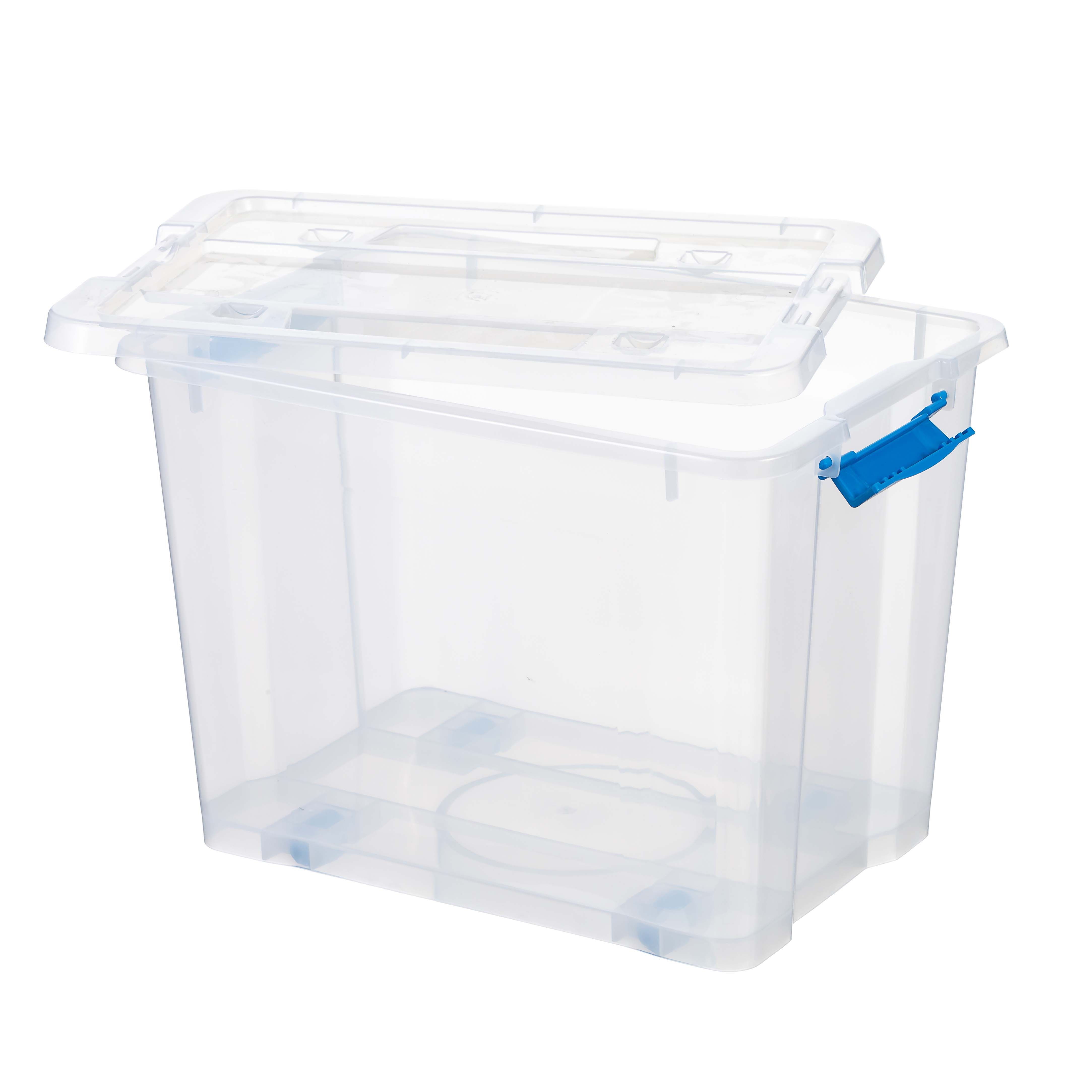 The Plastic Storage Box with Snap Lid will help you organize your home or office better. This lidded plastic box is designed with a snap closure to keep the contents secure. It is designed with wheels making it easy to move it from one place to another. You can use it to keep files, books, toiletries, stationery and more.