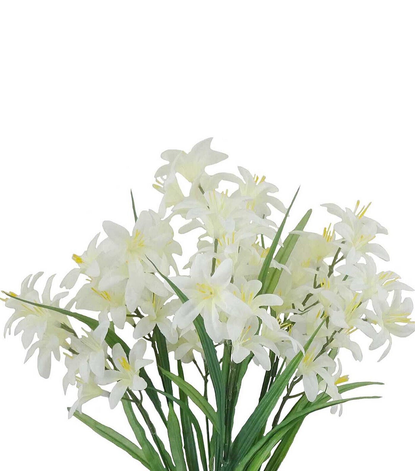 Give your home an elegant makeover this spring season with the Spring White Lily Bush by Bloom Room. It is crafted with white lilies and leaves in a lovely shade of green. Pair it with a pink berry bush, sold separately, and display them on the mantel or foyer table.
