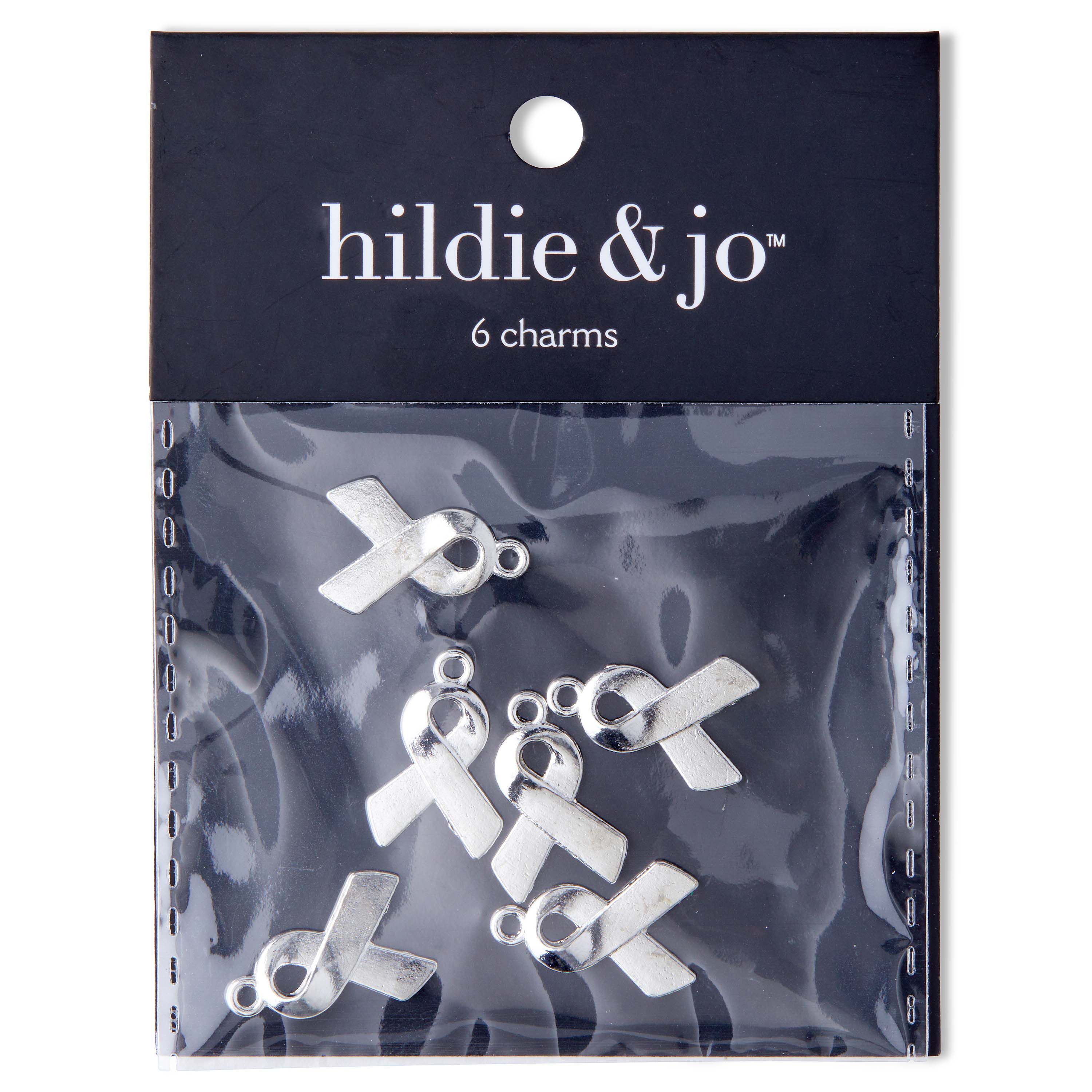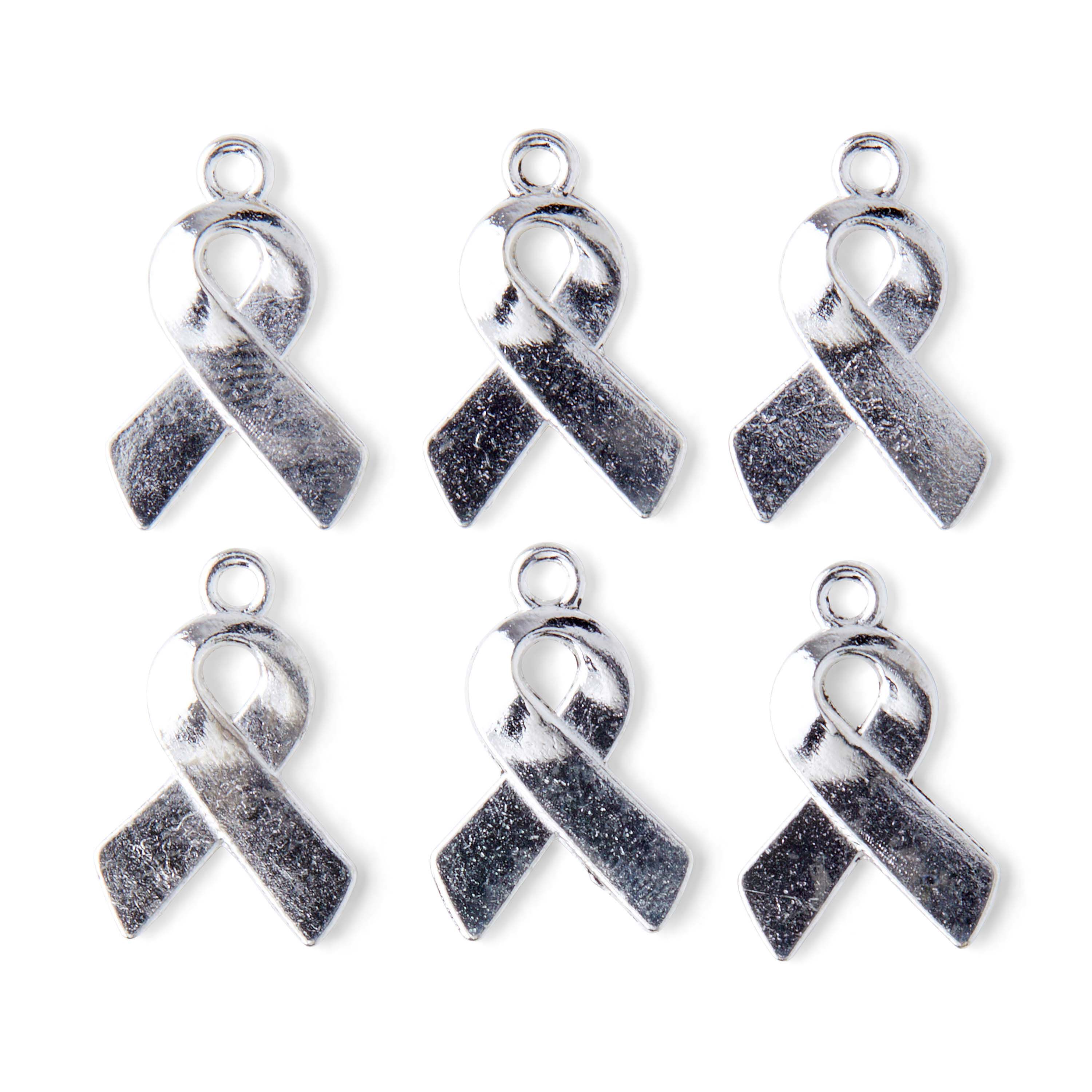 The popular ribbon symbol is now available in a charm! For necklaces, bracelets and more. Brass construction with silver plated finish. 20mm x 13mm.
