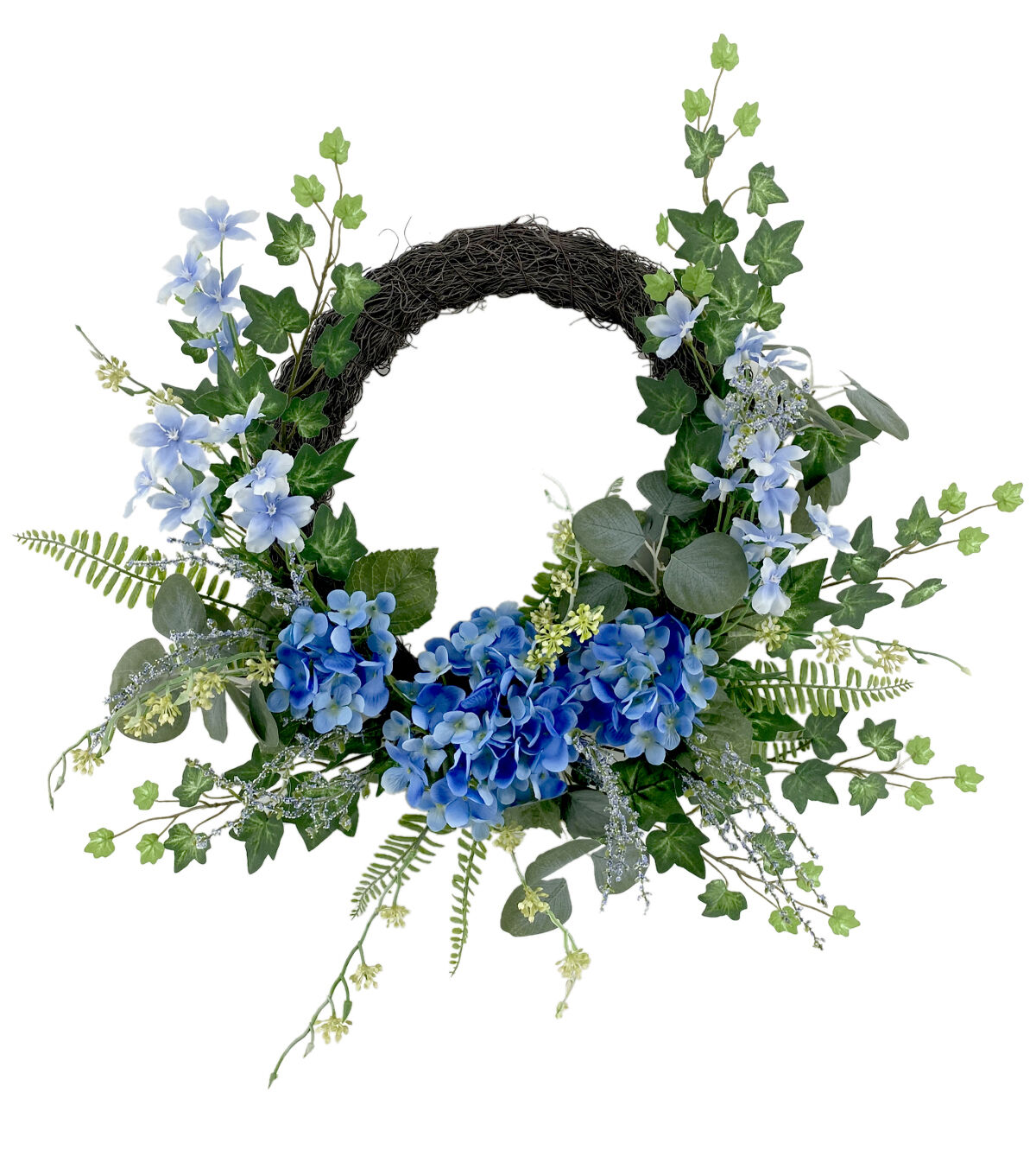 Bring Spring into Your Home with the 21" Spring Asymmetrical Blue Hydrangea Wreath by Bloom Room