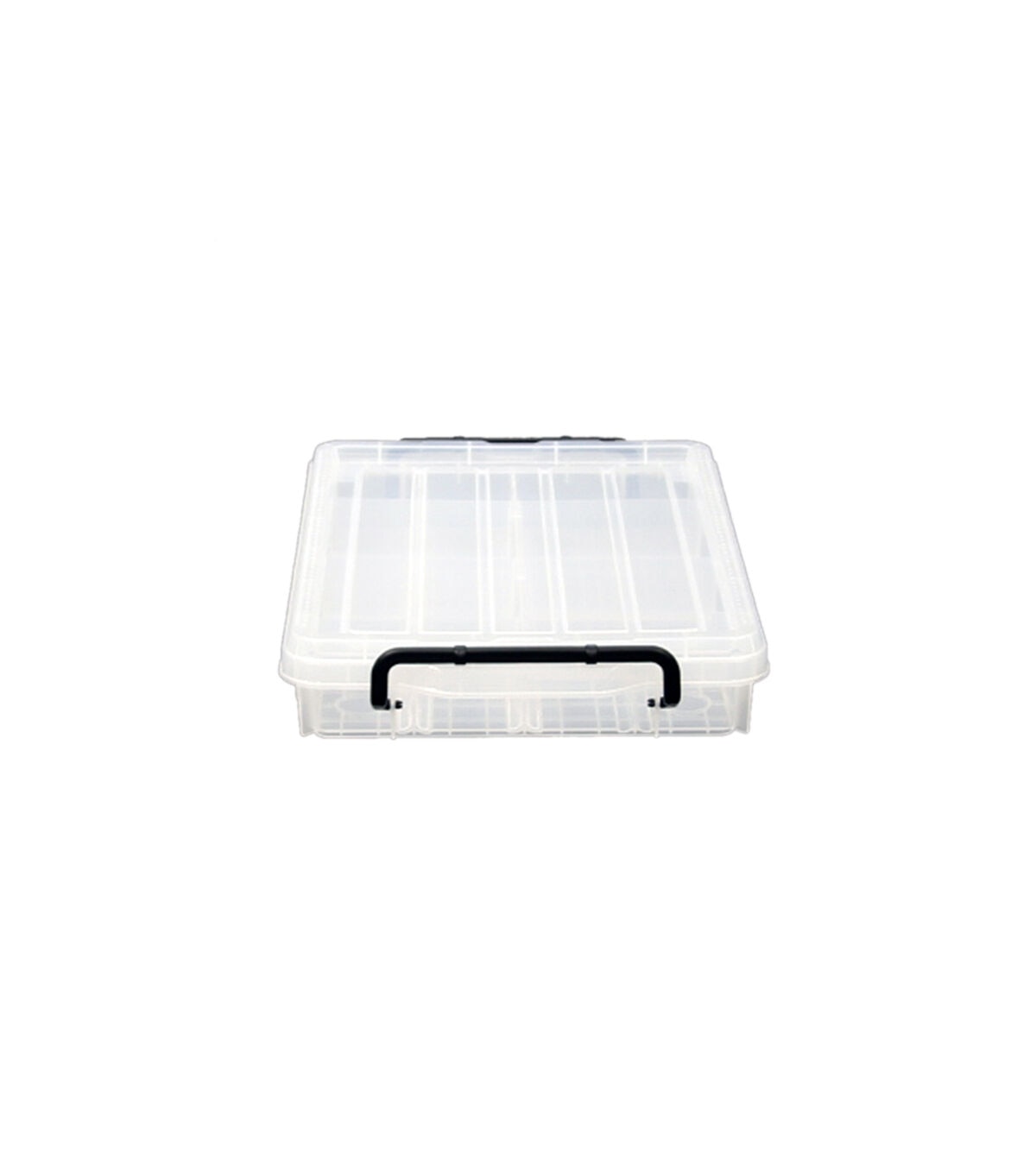 - Keep away from extreme heat. Always handle with care when stacking products. Meant for storage use only. This product may be unstable when stacked high. Do not stand on or lean against stacked productid. Container may be damaged if dropped. Be careful not to pinch or catch fingers when adjusting dividers or snapping handled closed.
