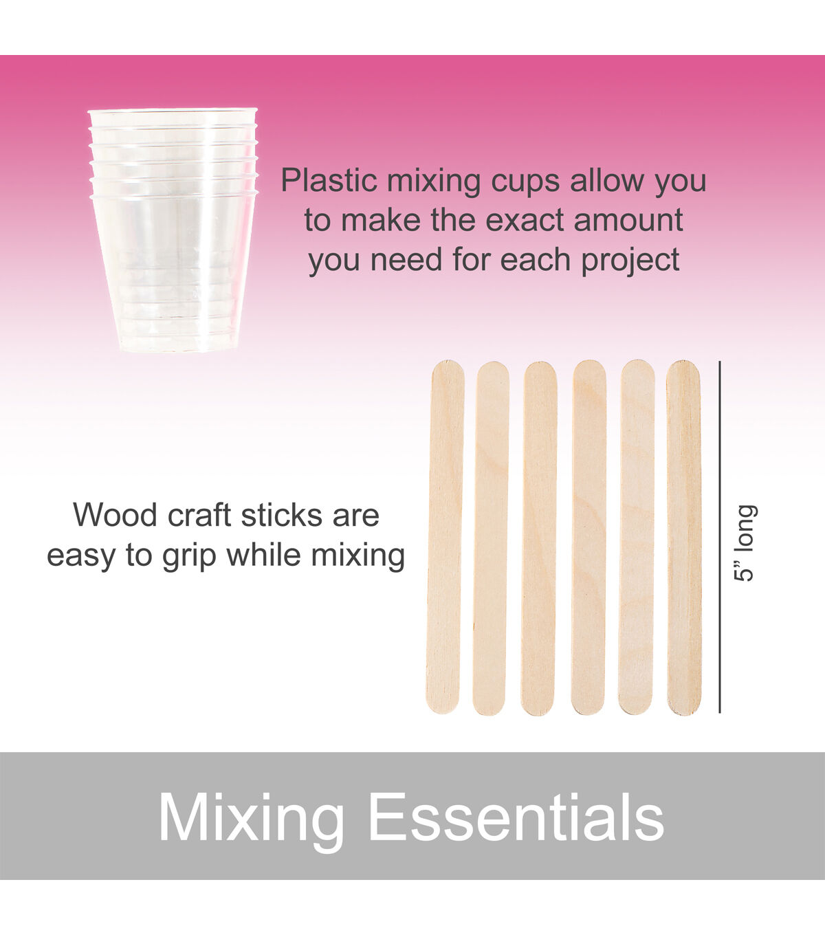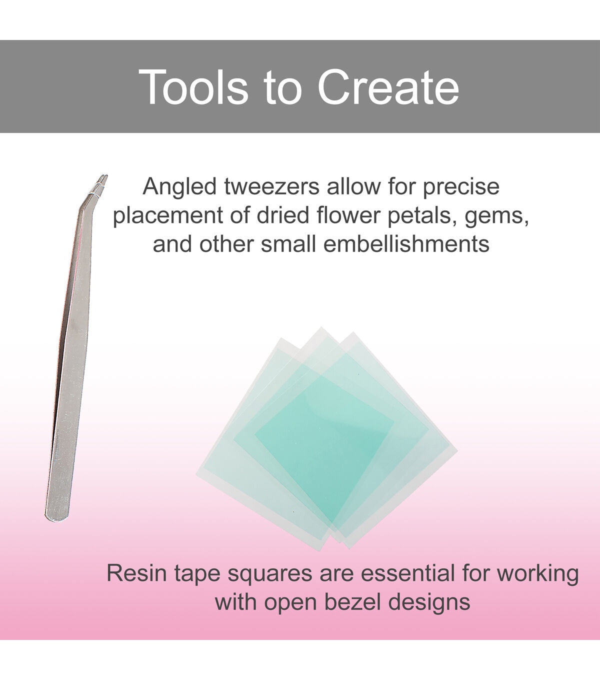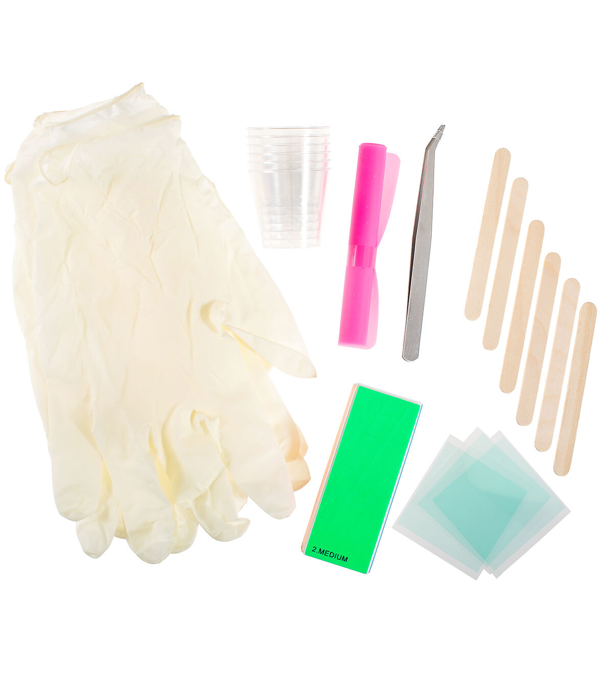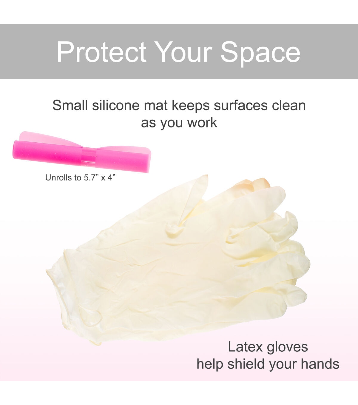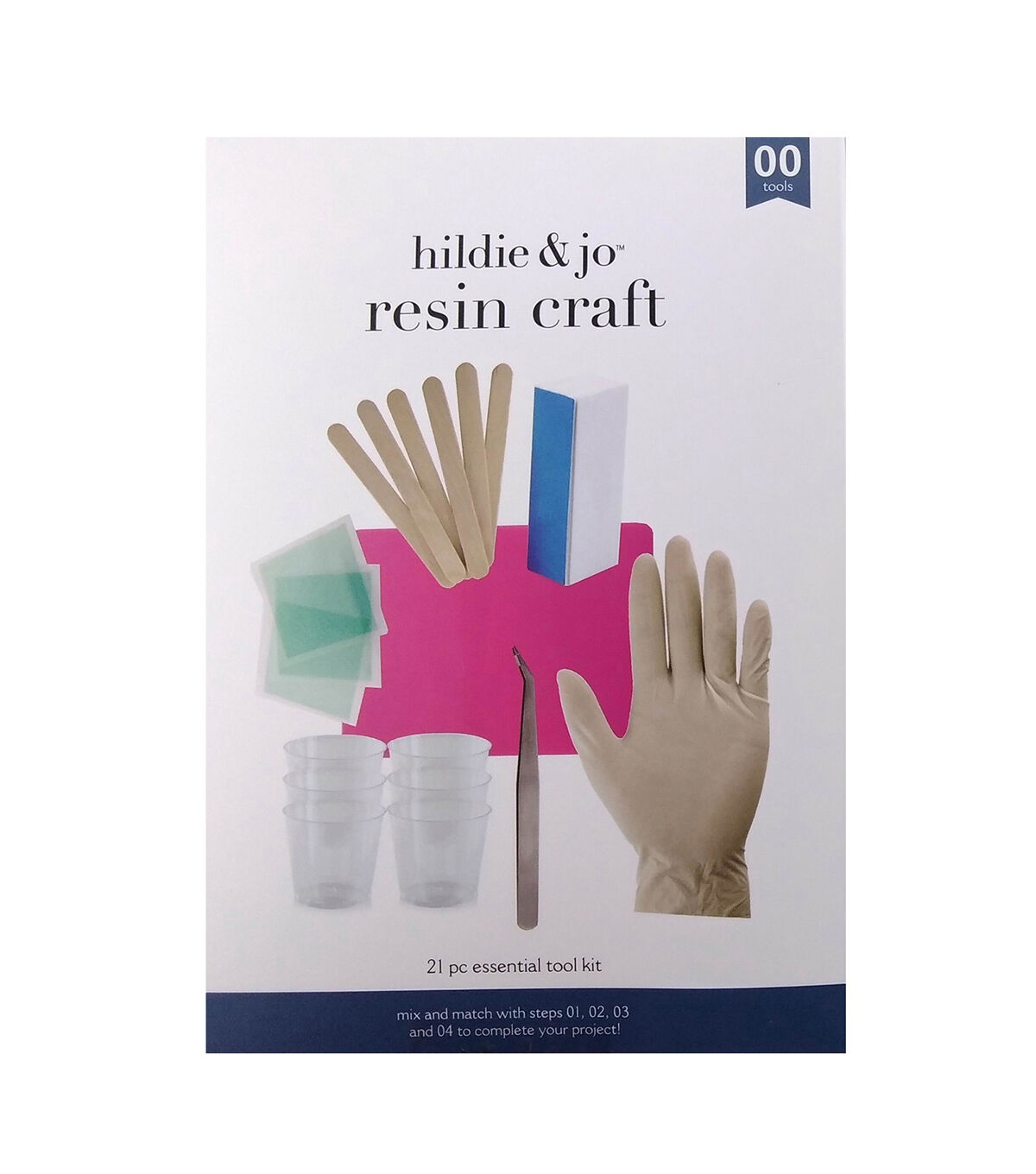 - Dimensions: Silicone Mat: 4.1"L x 5.7"W, Mixing Cups: 1 fl oz, Mixing Sticks: 3 5/8"L x 3/8"W, Tweezers: 5"L x 3/8"W, Smoothing Block: 3 1/2"L x 1 1/2"W, Resin Tape Squares: 2"L x 2"W, Latex Gloves: 9"L x 4"W