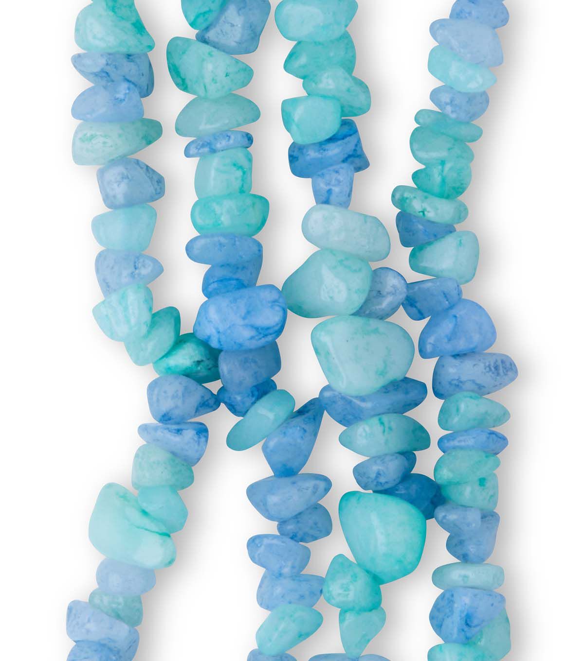Jewelry making will be fun with the Halcraft Bliss Beads Quartz Stone Chips Bead Strand - Aqua Mix. These natural semi-precious stone beads are carved from blocks of semi-precious stone. They are cut carved, polished and drilled and then polished some more until they shine. You can also use them for any of your home decor projects.