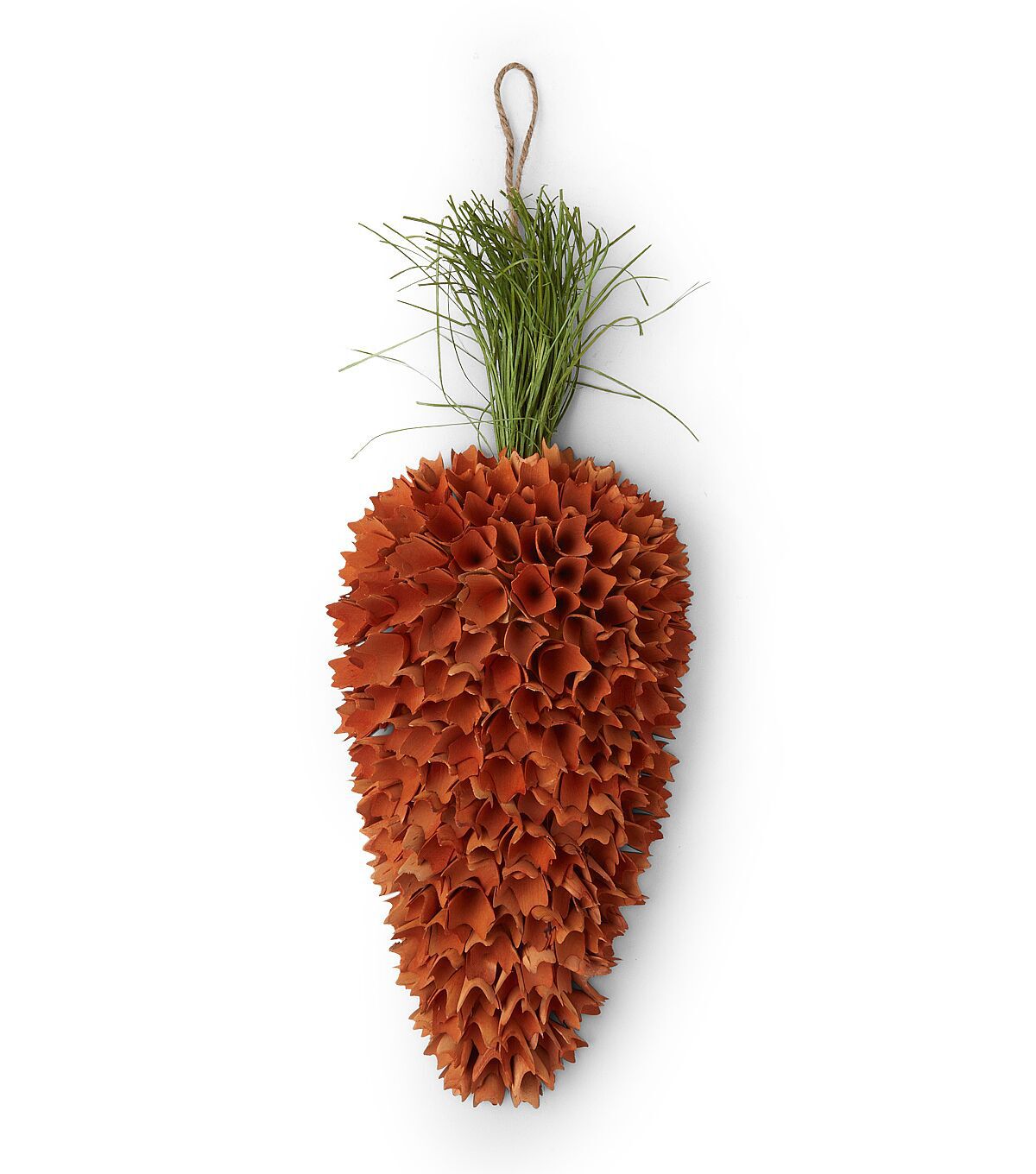 Liven up your seasonal home decor with the Easter Orange Woodchip Carrot Wreath by Bloom Room. This wreath is shaped like a carrot and designed with orange woodchip flowers. A green corn husk top completes it. You can display it on the front door or the entryway wall to give your guests a warm welcome.