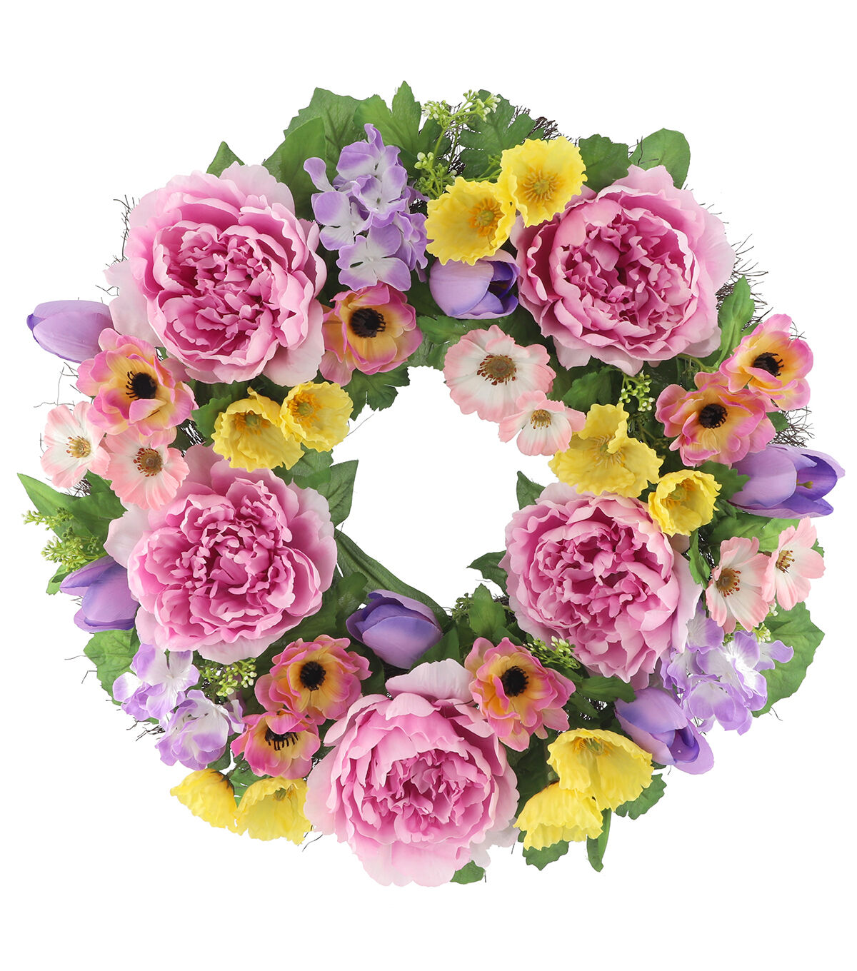 Accentuate your home decor this spring with the Spring Purple Hydrangea & Pink Peony Wreath by Bloom Room. This faux floral wreath is designed with peonies, anemones and hydrangeas in lovely shades and green leaves. Showcase it on the front door or mantel. You can also add a bow to it for enhanced visual appeal.
