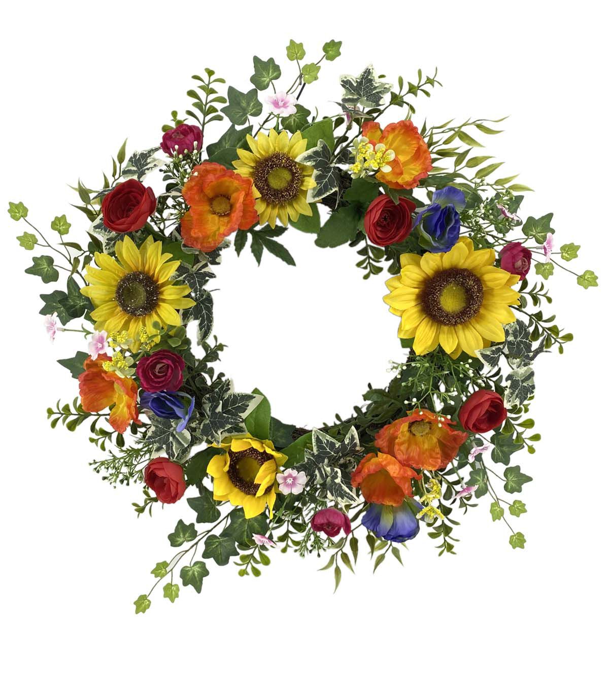 Brighten Up Your Home with the 22" Summer Yellow Sunflowers & Red Poppies Wreath by Bloom Room