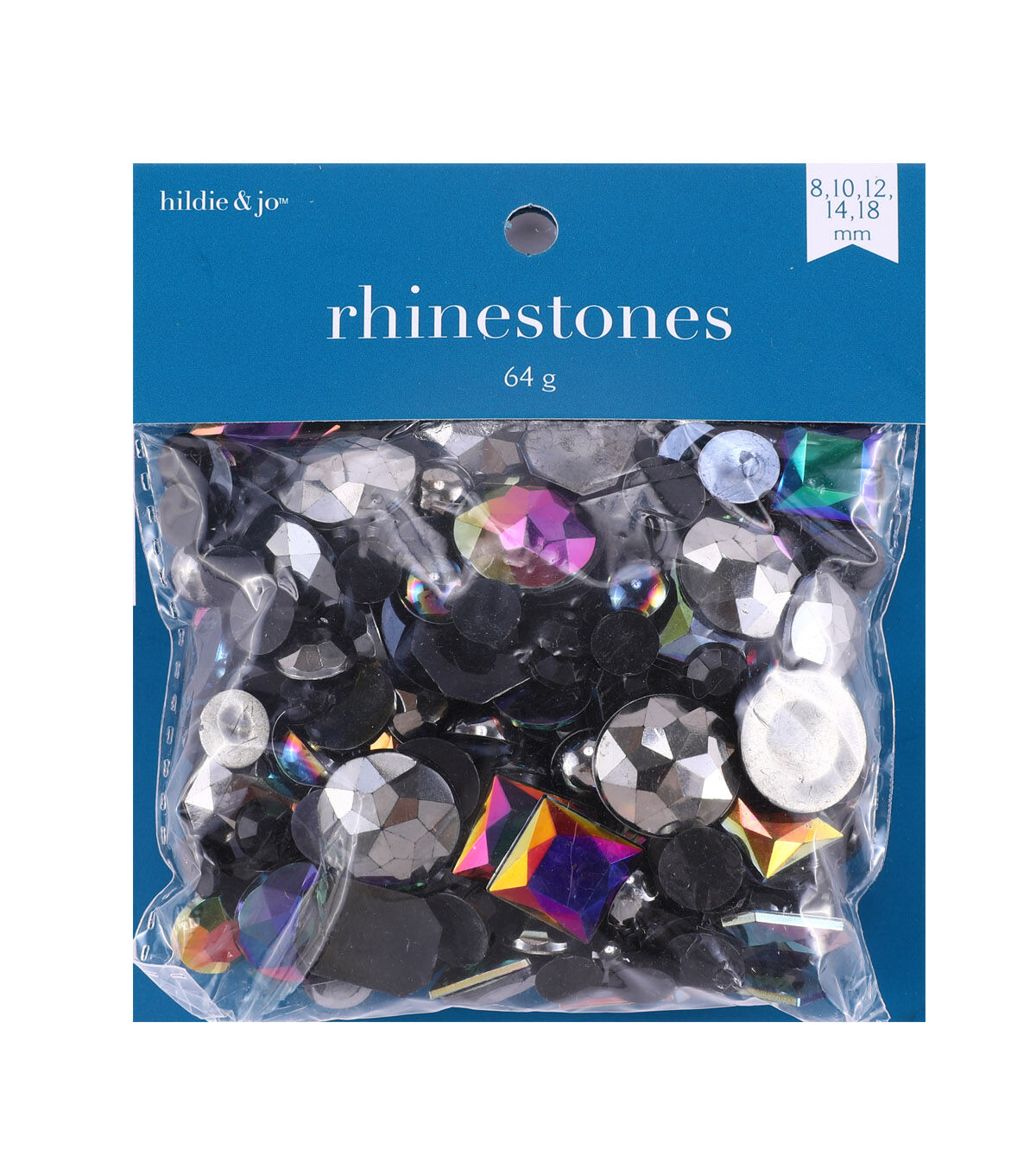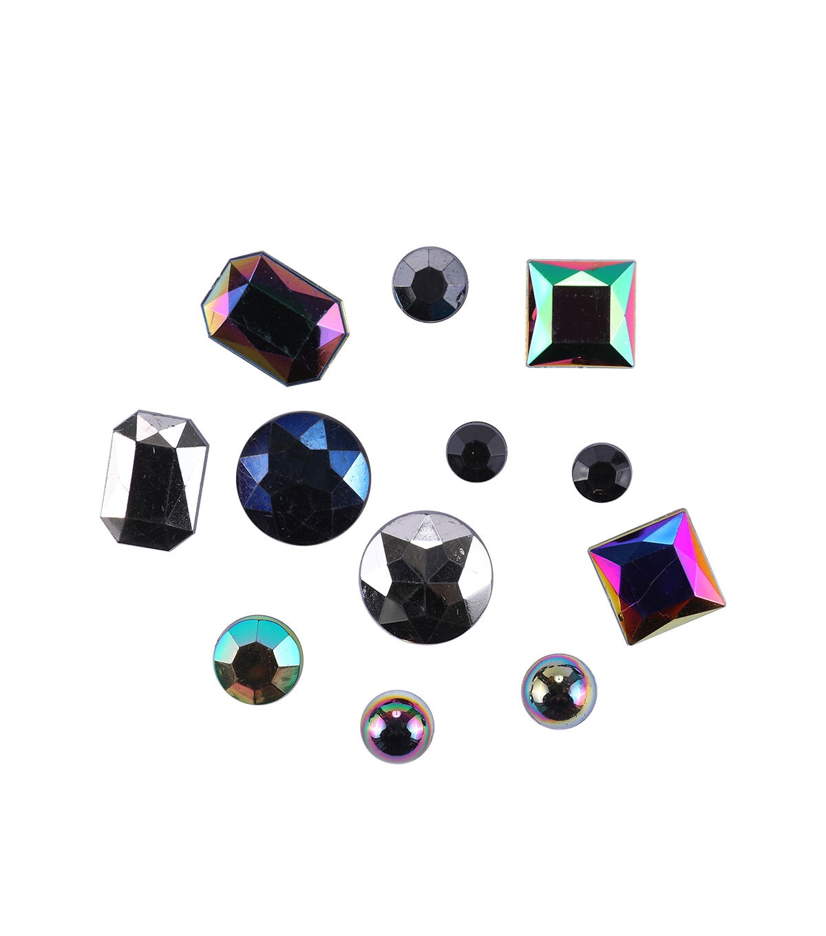 Add sparkle to jewelry designs, bags and accessories using the hildie & jo Assorted Plastic Flat Back Rhinestones - Black. These flat-back rhinestones come in an assortment of shapes, sizes and faceted designs to match every project. Pair them with other coordinating jewelry pieces to make beautiful bracelets, necklaces, anklets and more.