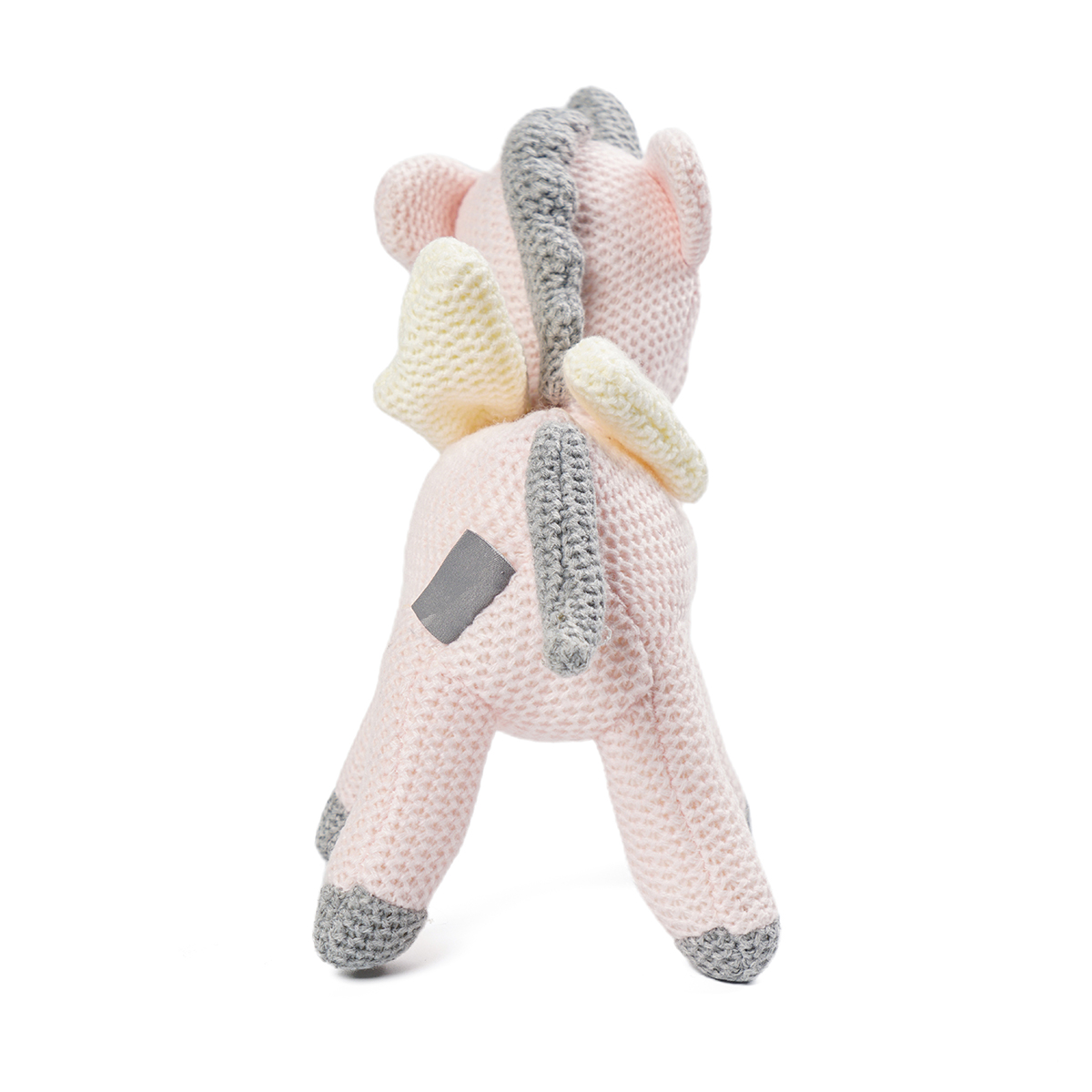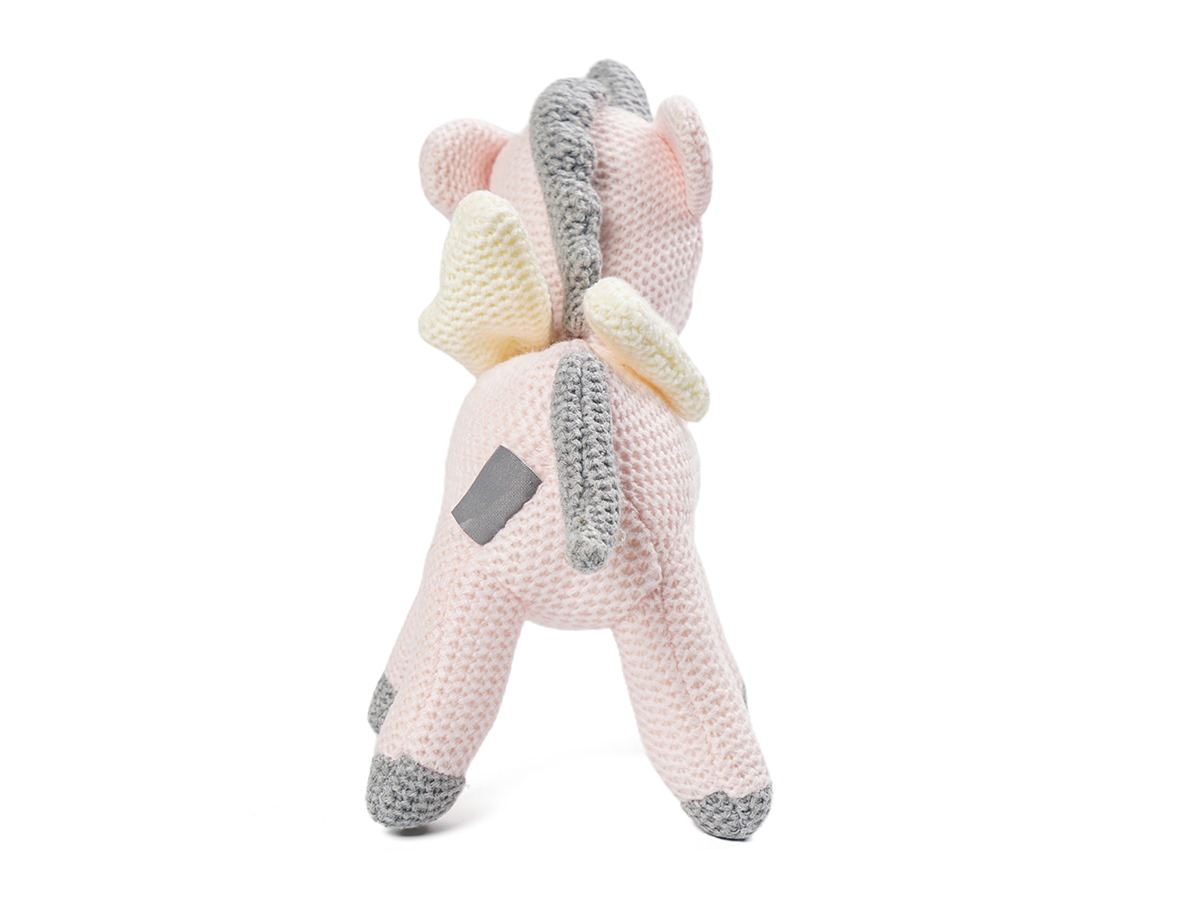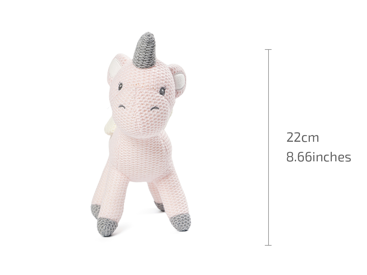 This is a knitting Pegasus doll carefully designed by a designer. Its knitting lines are neat, tight, and dense. The cute appearance makes the baby more like it. The environmentally friendly pp cotton is filled, fluffy and soft, and has good resilience. It cannot be kneaded. Deformation is a good companion toy.