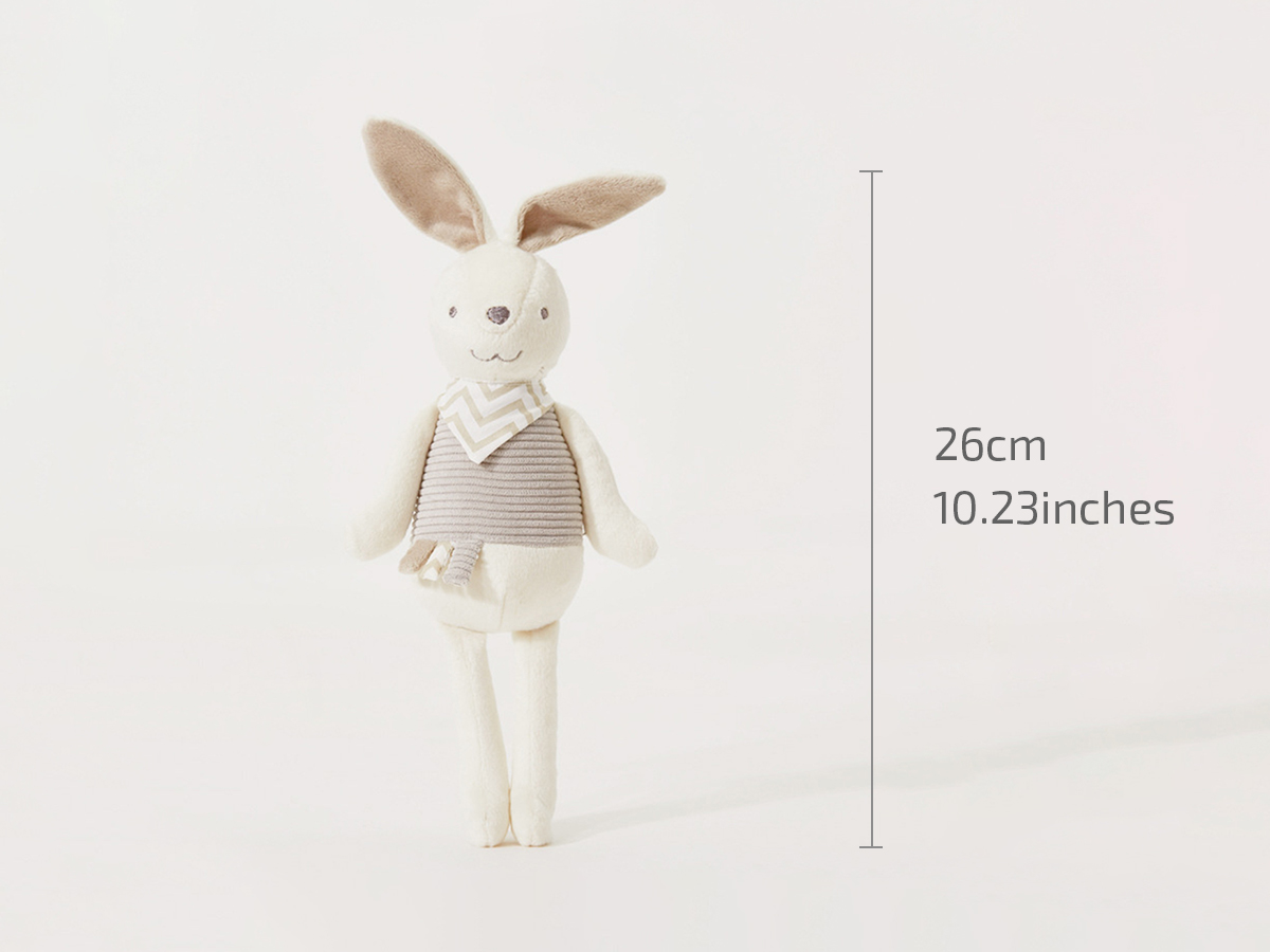 Soft and plushy! This rabbit stuffed toy is an ideal gift for a baby who would love a sleeping company to comfort them and help them go through the long night. Scientists have proved that baby's emotion and sense of security have a lot to do with their living and sleeping environment. A soft and comfortable plush doll can play such a role as a sleeping mate and playmate, which can contribute to a baby's a more stable and happy state.