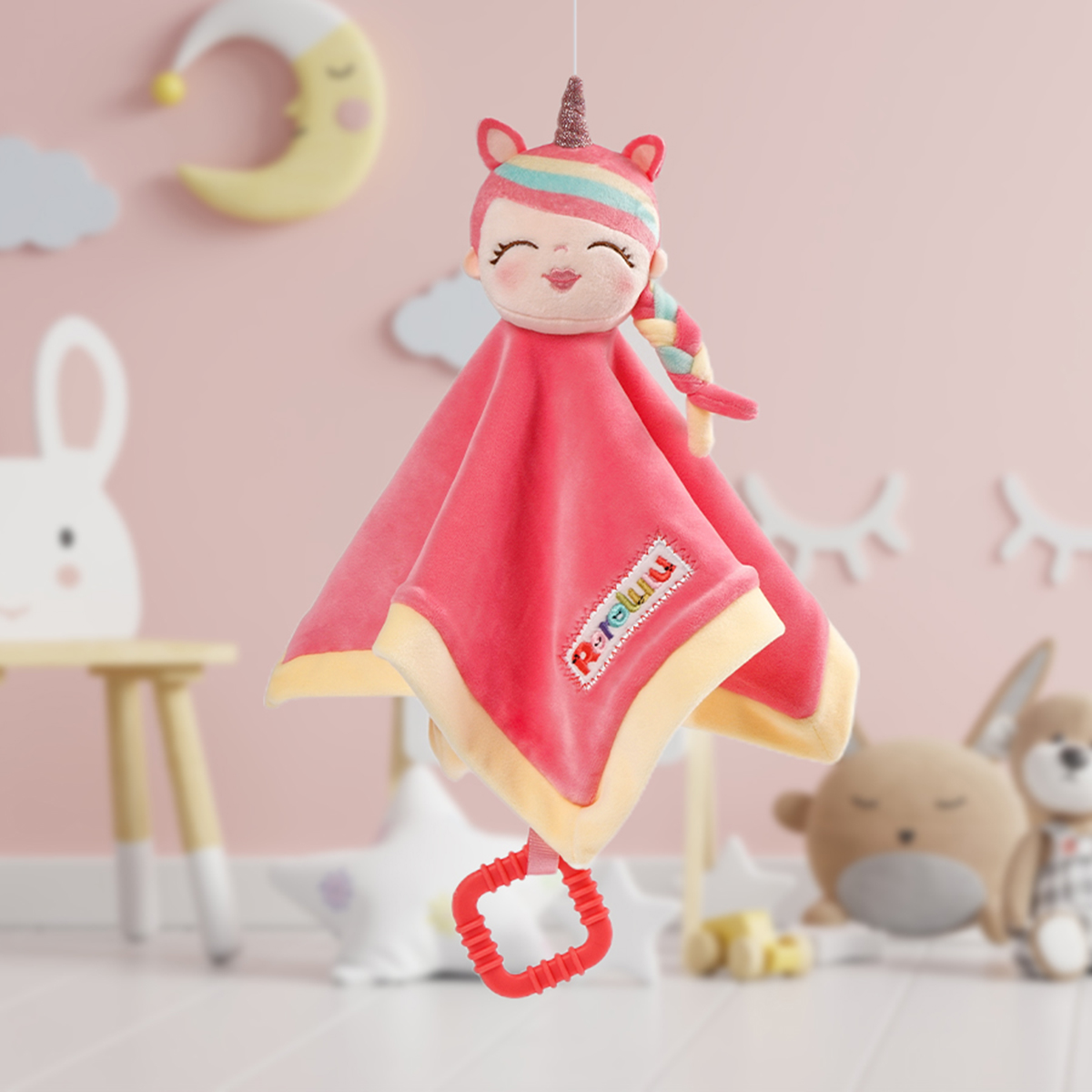 Unicorn Rorolulu has a cute little alicorn that is capable of receiving the power of love and turn it into her own strength. Now we have this new little blanket in the name of love! This security teether towel is chewable for its safe material. Perfect gift for babies, infants, and toddlers!