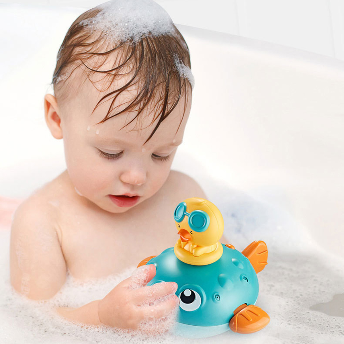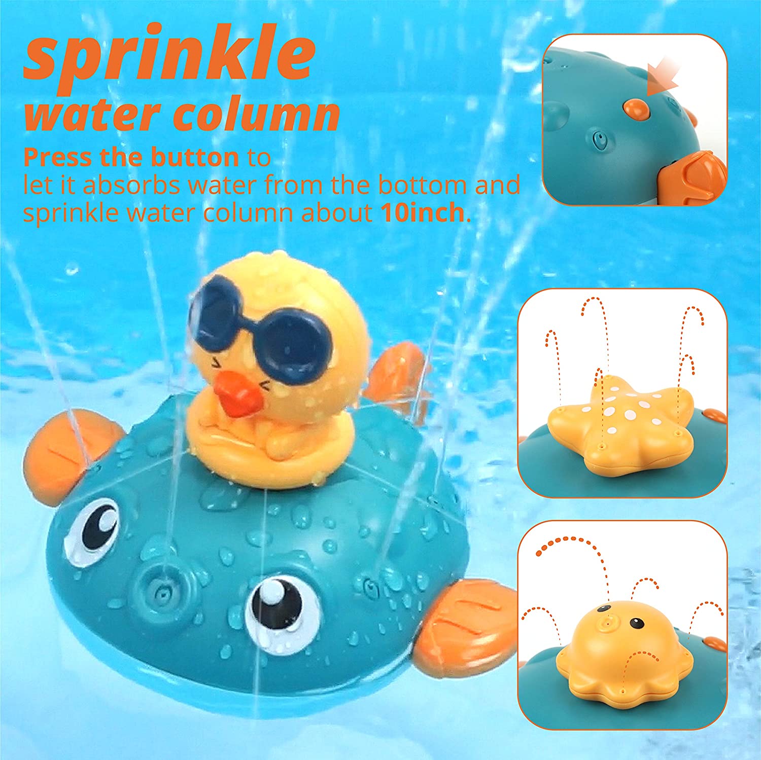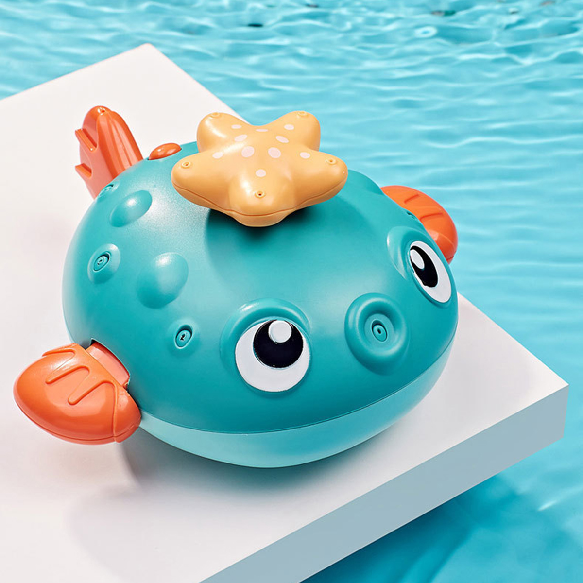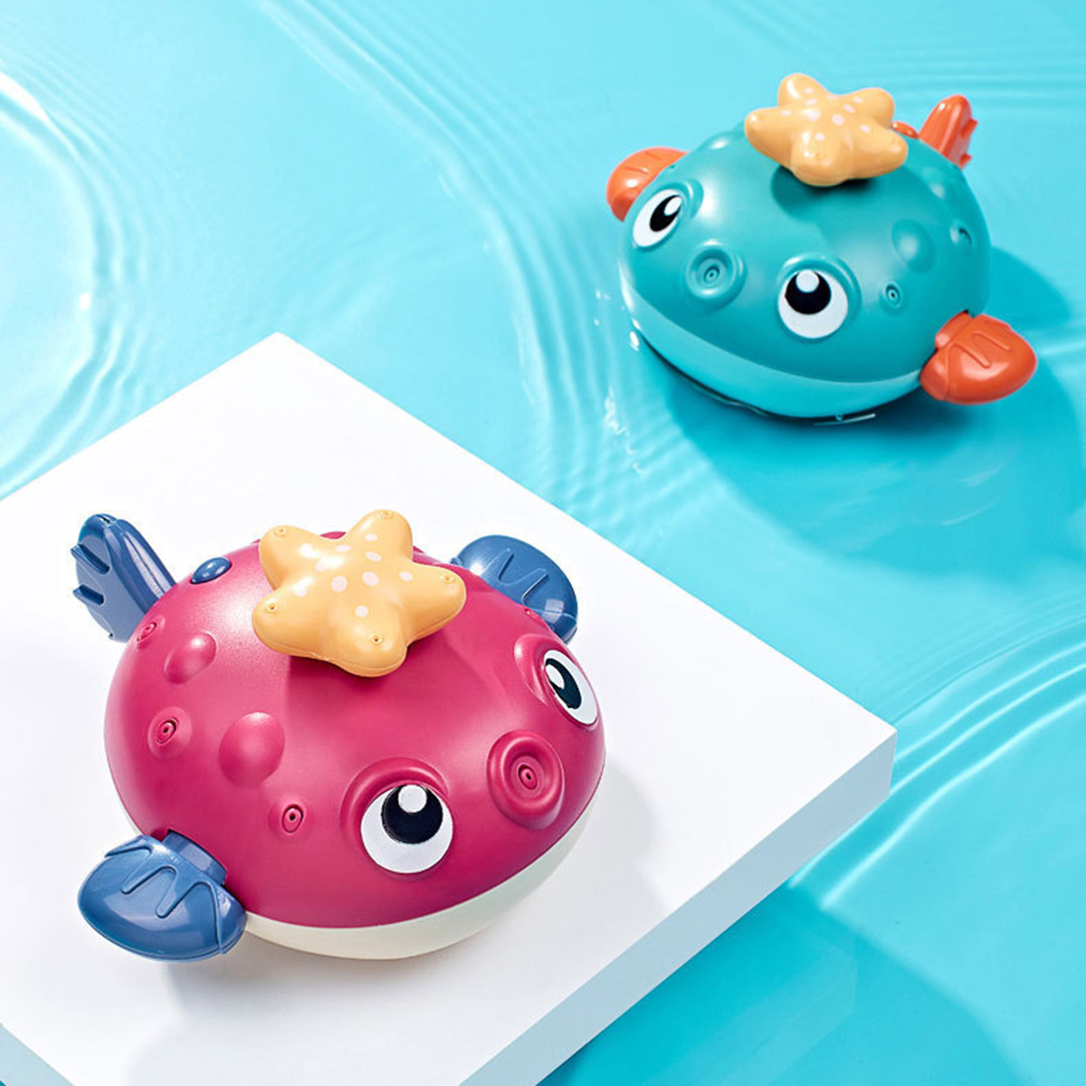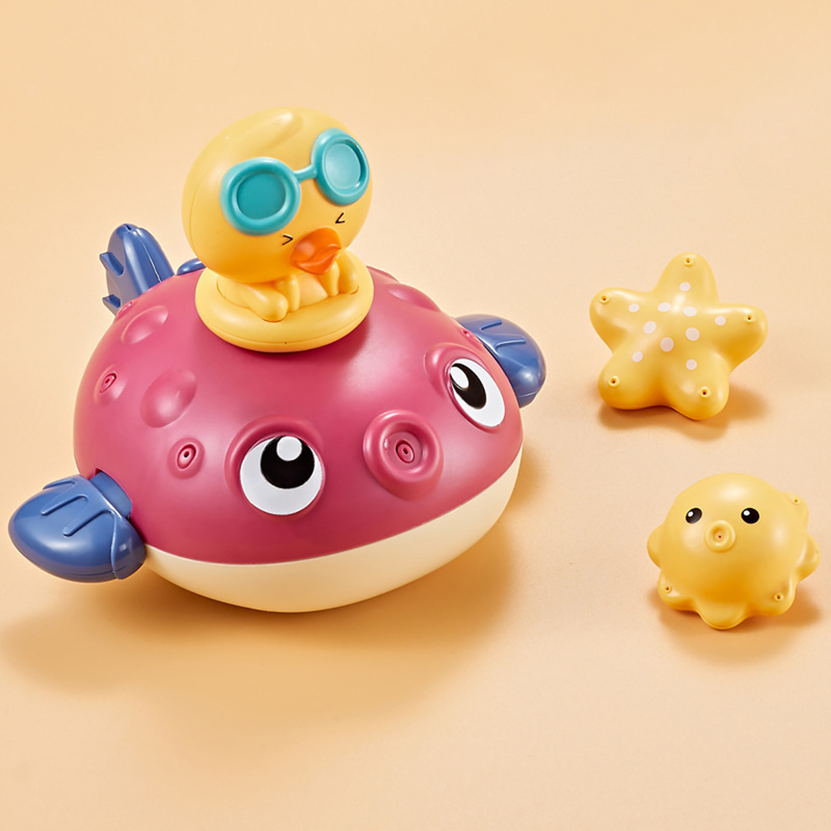 Come with the floating principle that allows the baby to sense the magical buoyancy, this electrical bathing toy would attract your baby with its cute pufferfish shape, strong buoyancy that keeping it floating on the water surface. Press the switch button on the back and put it in a sufficient amount of water. The internal motor rotates to generate suction and spray water jets. This cute jetting bathing toy would definitely make your little one enjoy the bathing time more!