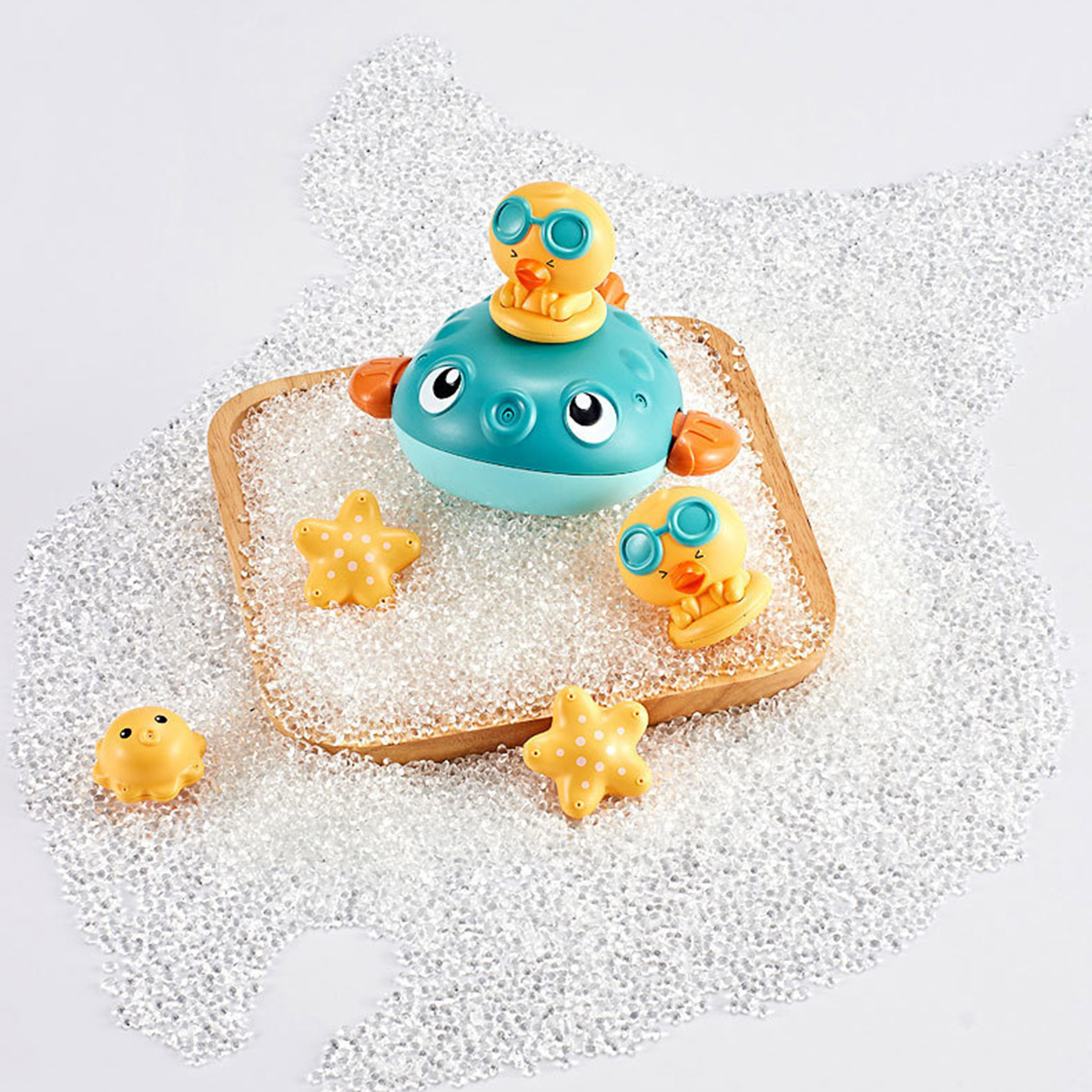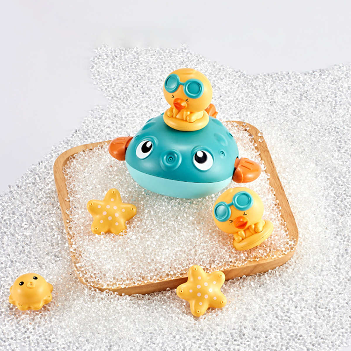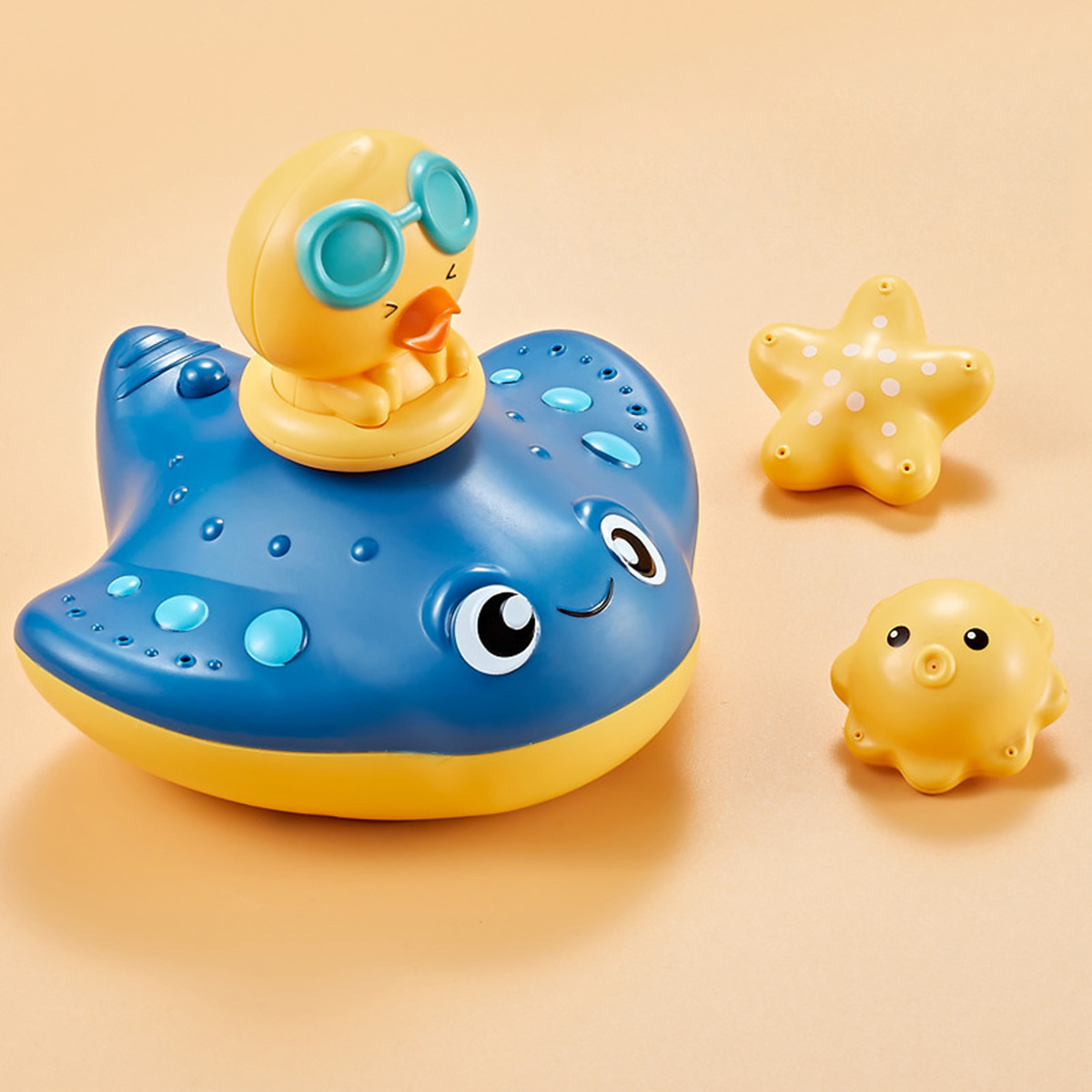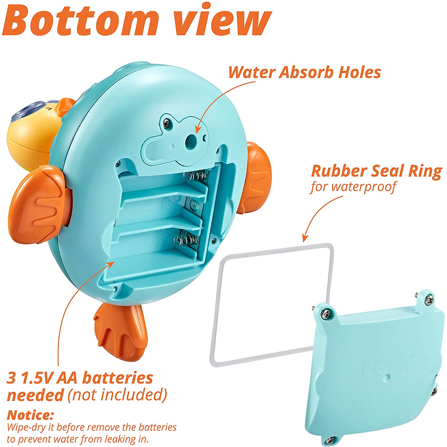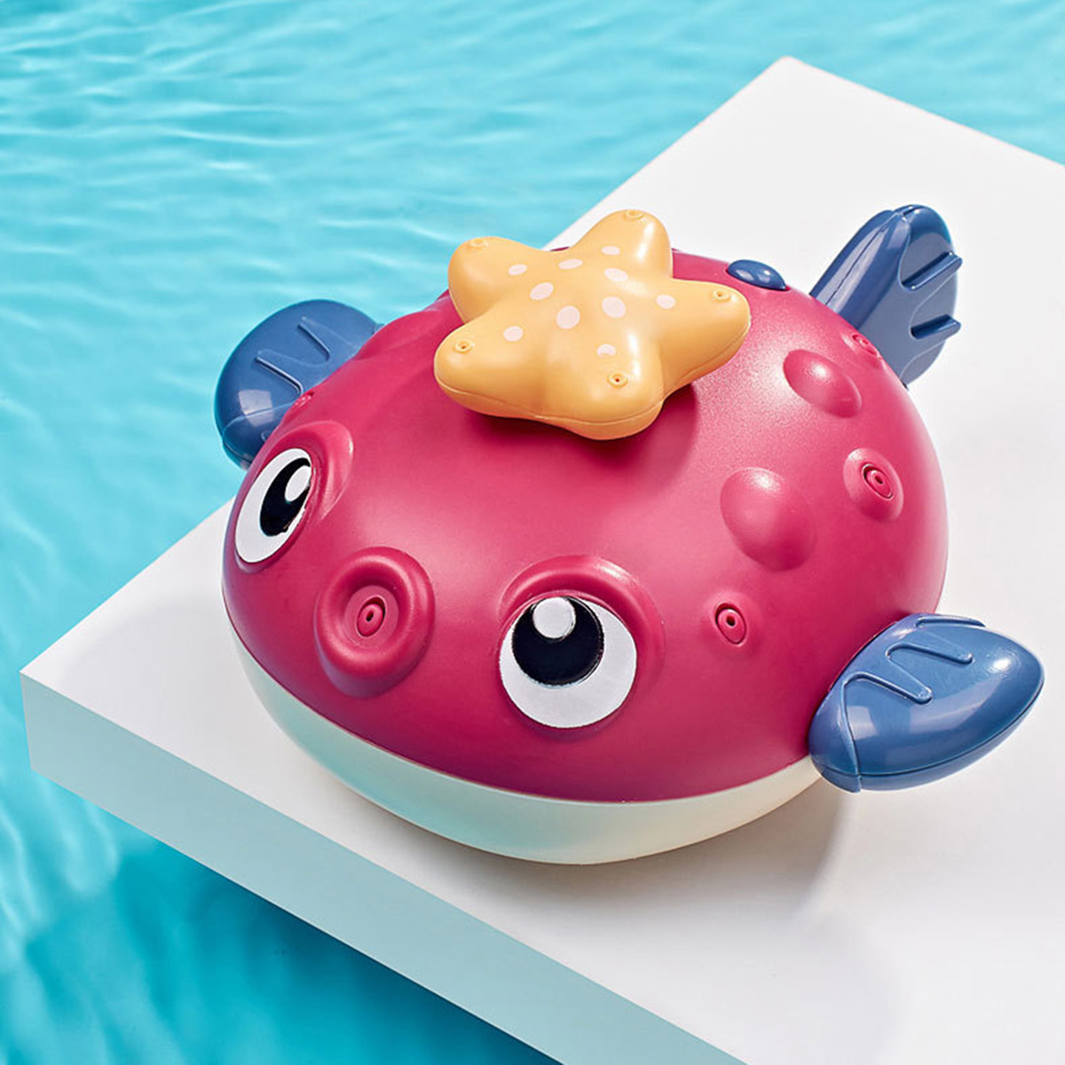 Come with the floating principle that allows the baby to sense the magical buoyancy, this electrical bathing toy would attract your baby with its cute pufferfish shape, strong buoyancy that keeping it floating on the water surface. Press the switch button on the back and put it in a sufficient amount of water. The internal motor rotates to generate suction and spray water jets. This cute jetting bathing toy would definitely make your little one enjoy the bathing time more!