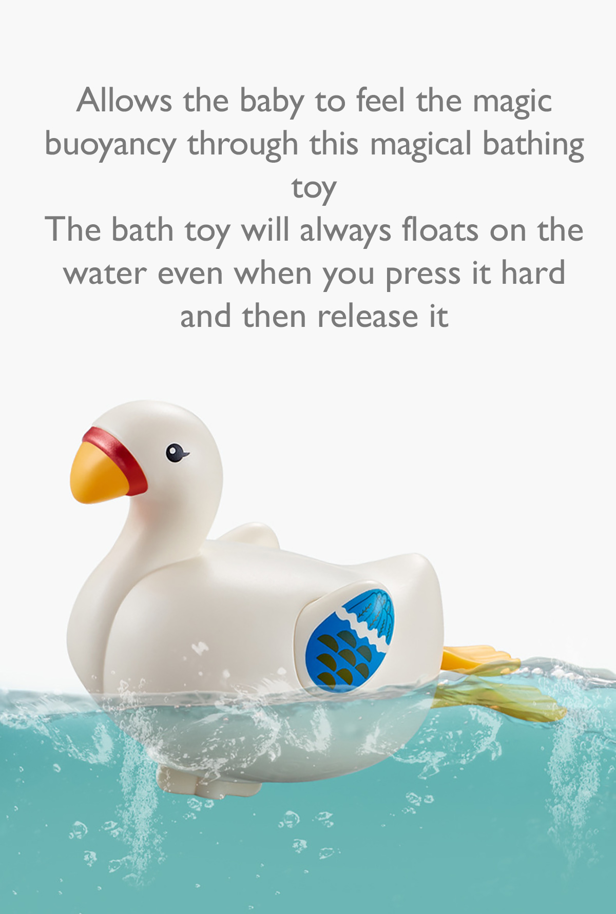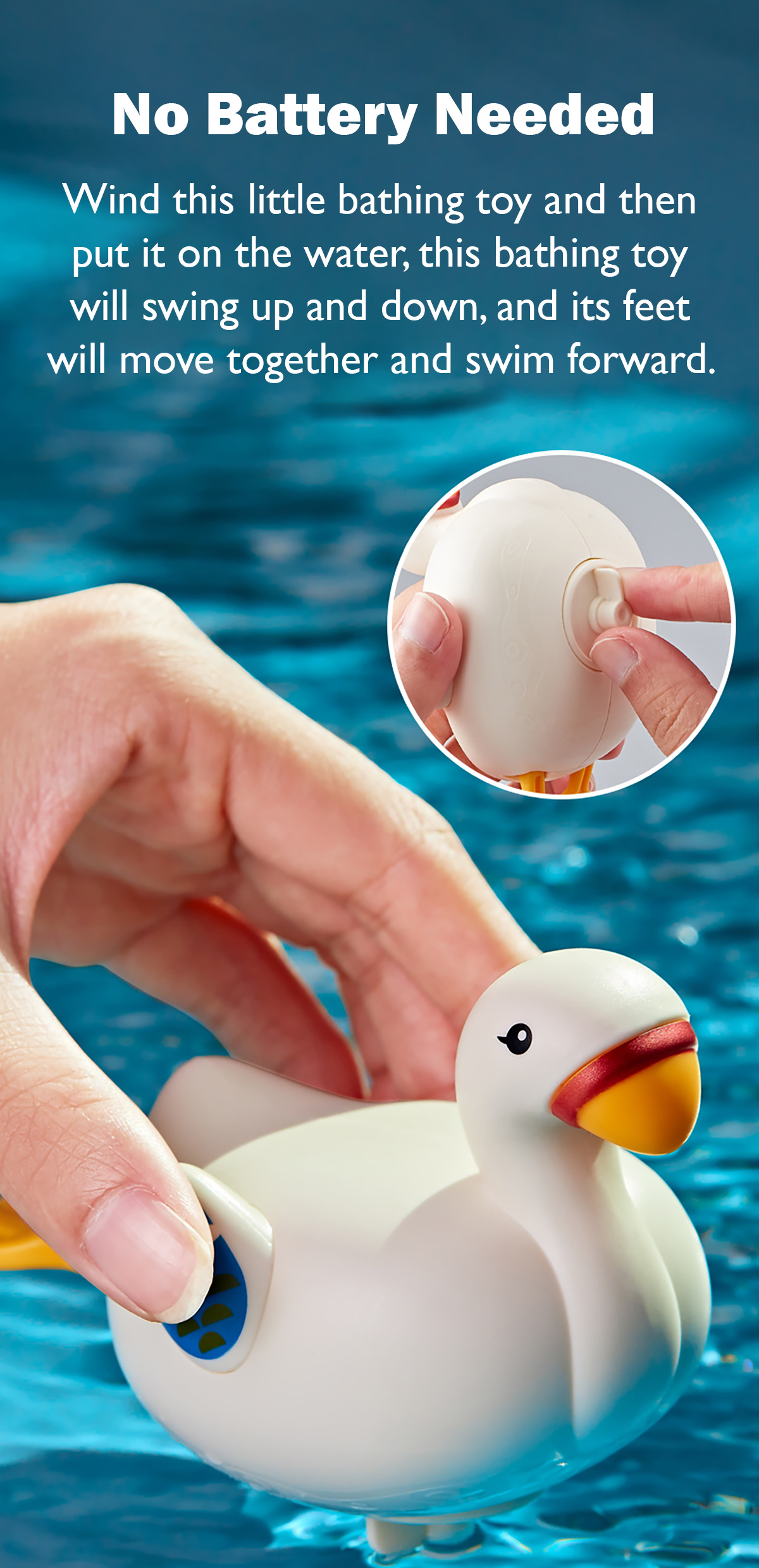Come with the floating principle that allows the baby to sense the magical buoyancy, this bathing toy would attract your baby with its cute outlook and strong buoyancy. Wind up this cute bathing toy and put it in a sufficient amount of water. The internal winding generates a driving force to move this bathing toy ahead. This cute moving bathing toy would definitely make your little one enjoy the bathing time more!