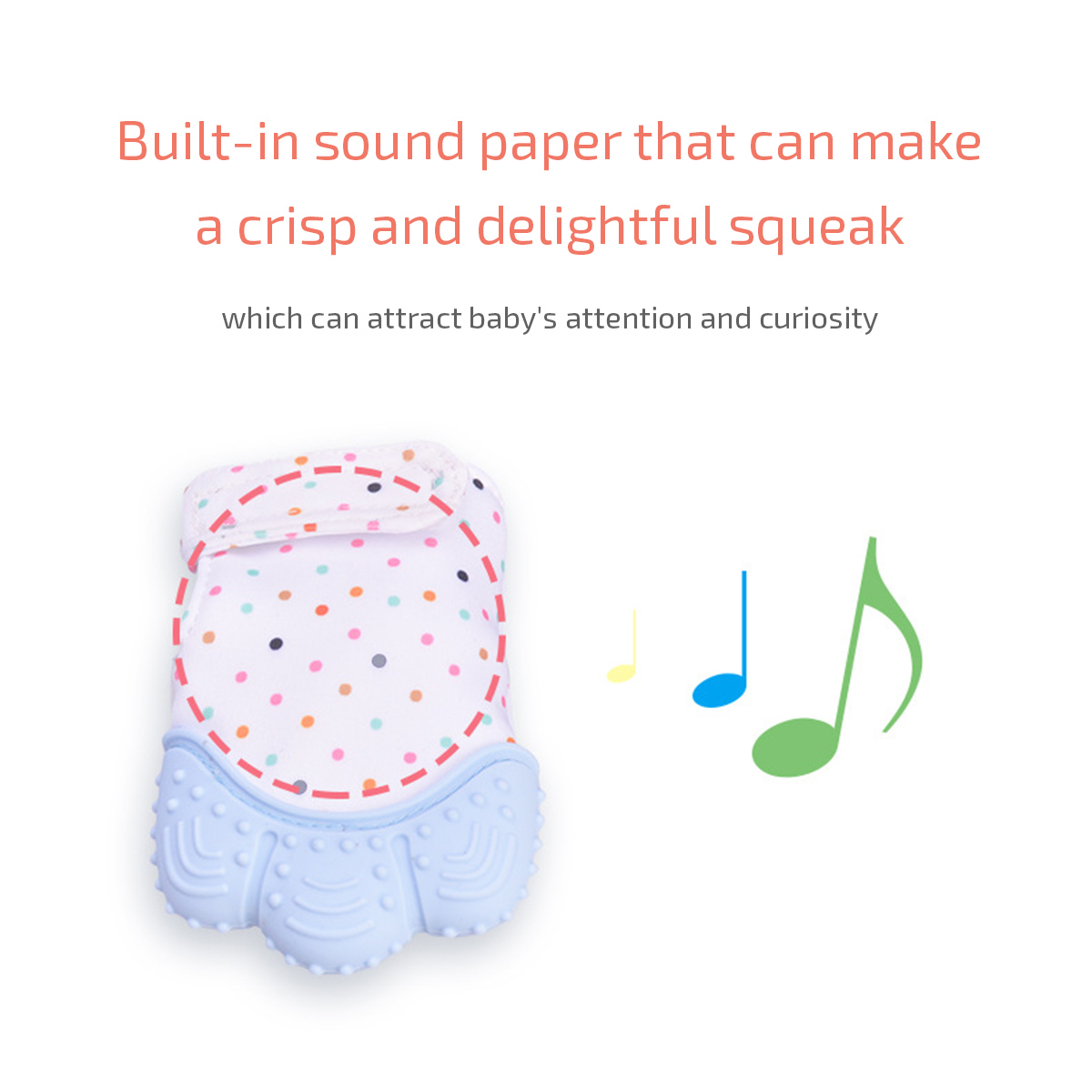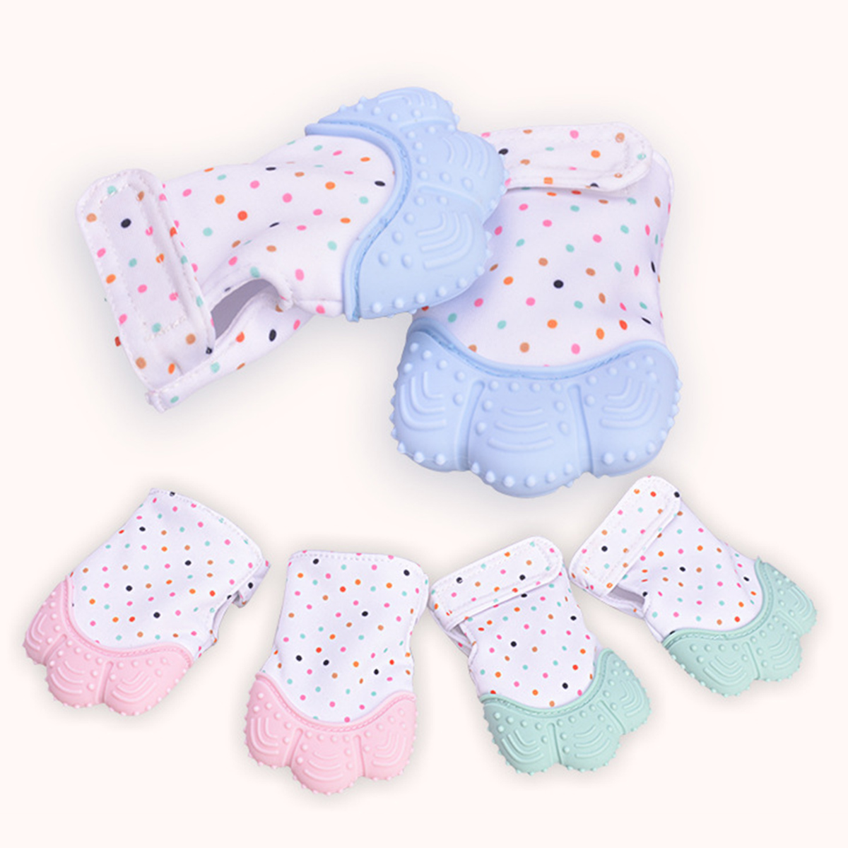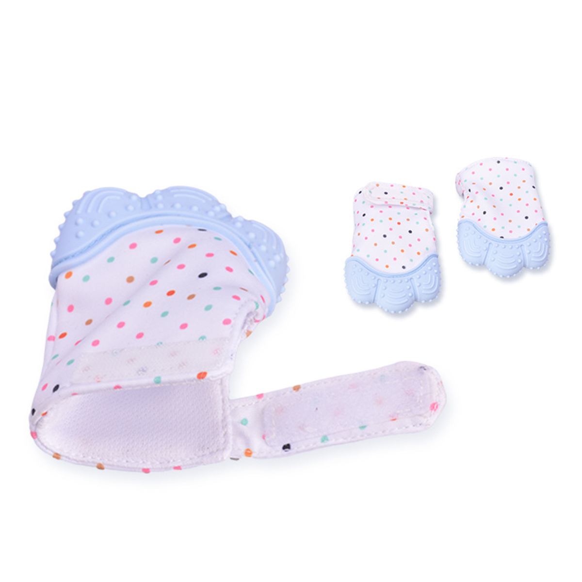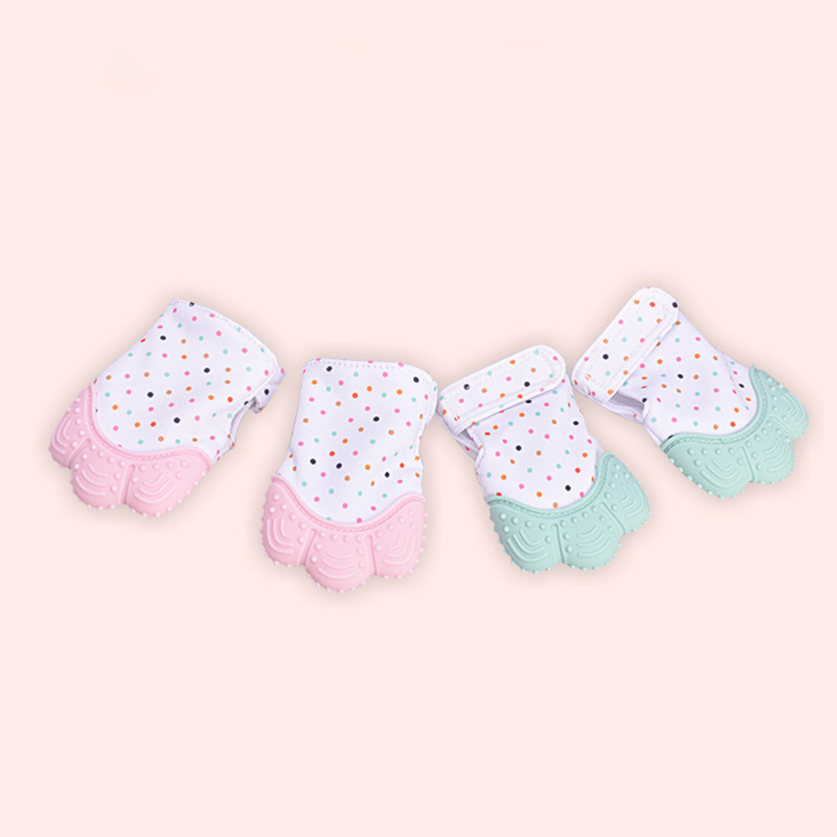 These teething gloves can prevent babies from scratching themselves when teething, and reduces the chance of blisters due to thumb sucking. The soft silicone gum on the top can help your baby relieve gum pain. The soft silicone gum on the top of the teething mittens can help your baby relieve gum pain. The wrinkling sound, the analgesic texture, and the wrinkling of teething gloves will help your baby reach developmental milestones faster.