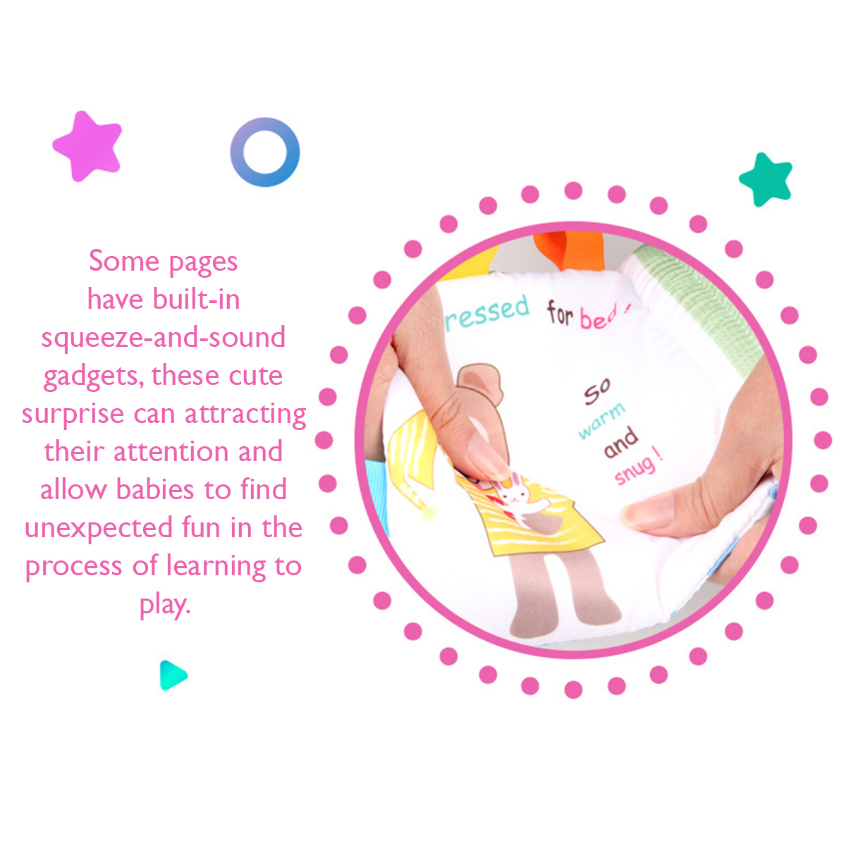 We put the colorful and cute patterns and letters on this cloth book and fill in this cloth book with high-quality cotton as well as ensure every stitch is neat and clean in order to bring the softest and comfortable touching experience. Reading such cute and interesting cloth books together with your baby can not only providing fun when spending beautiful parent-child time with your baby, but also enhance the baby's reading interest and hands-on ability. It is more appealing more than the normal paper book.