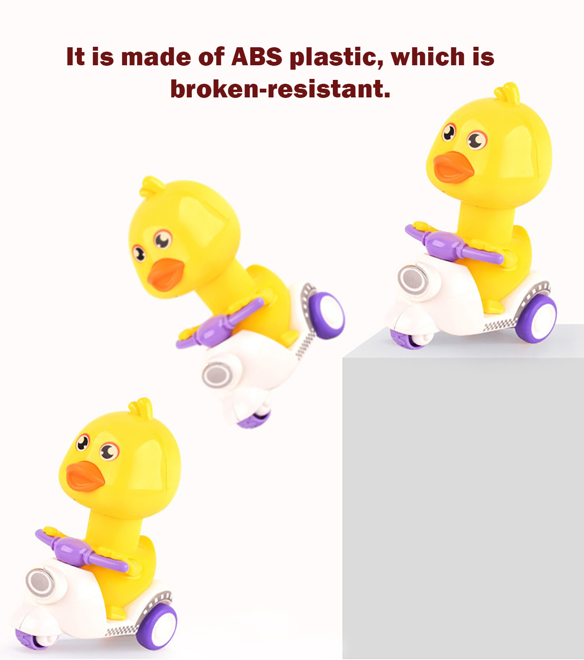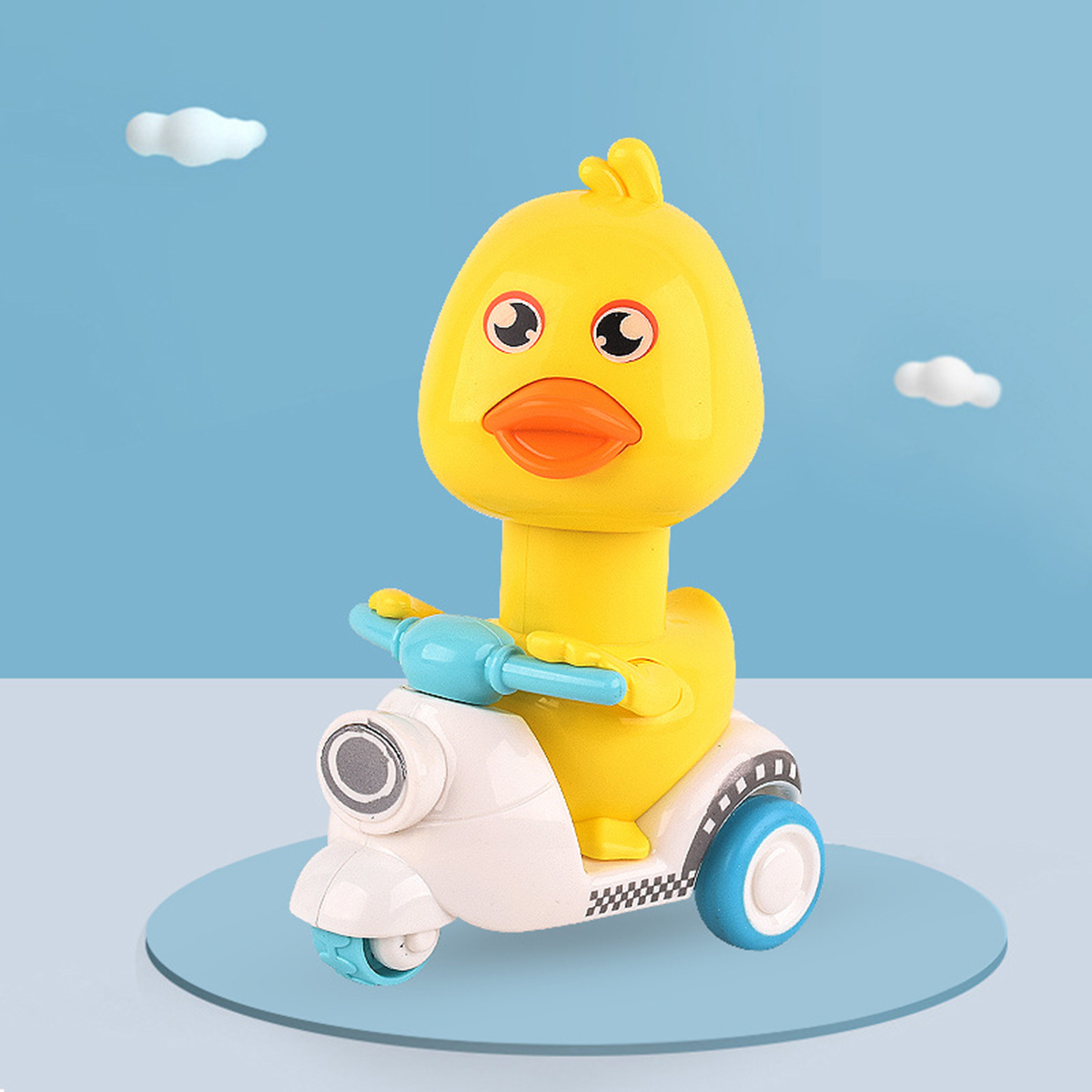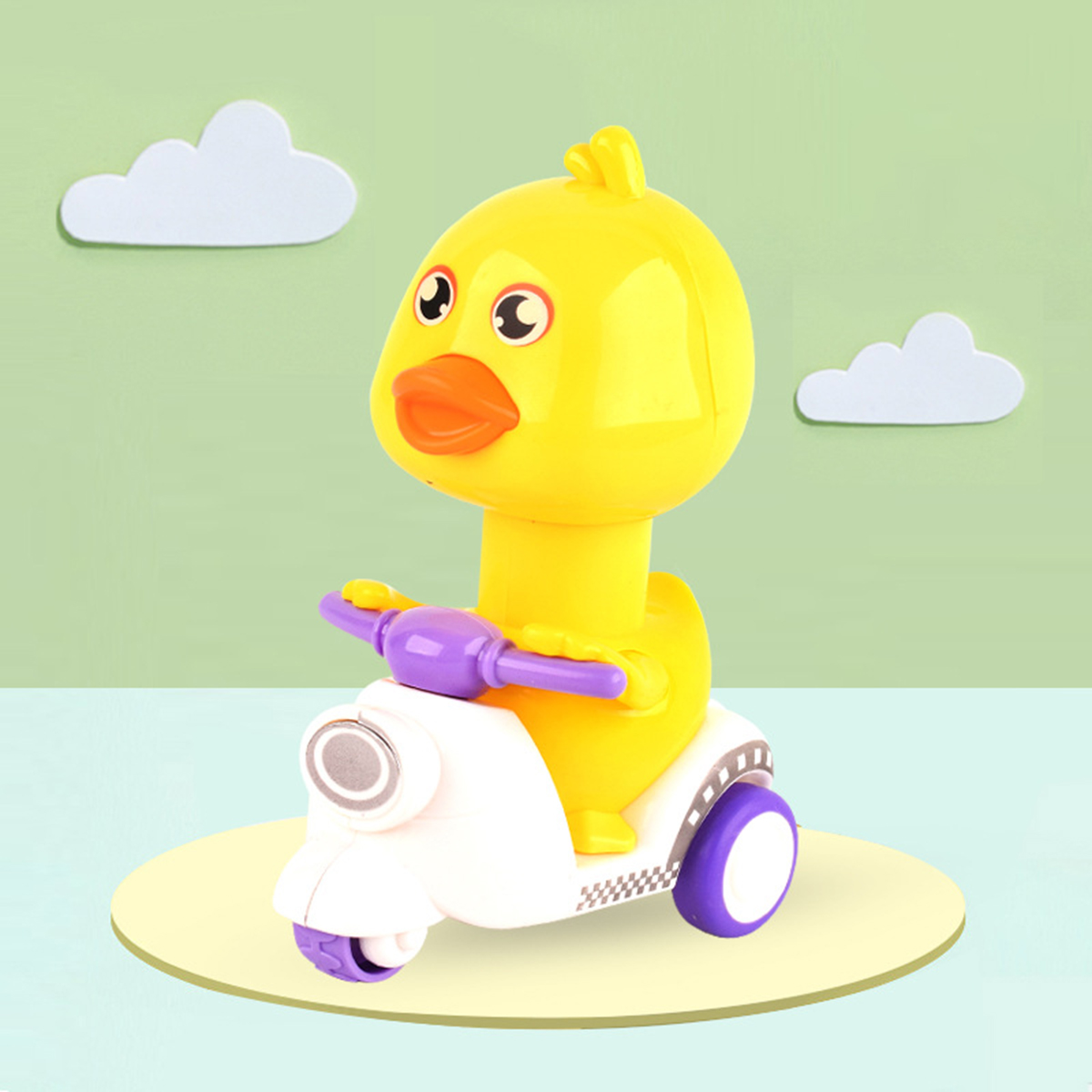 This is a kind of popular pressing motorcycle duck toy with various colors. Just press its head lightly and it will move forward. Rotating its head will make a sound, which is interesting. The material of this toy is sturdy, so you are not afraid that they are dropped by your baby. It will be a good partner for babies to learn to walk, suitable for ones over 18 months old.