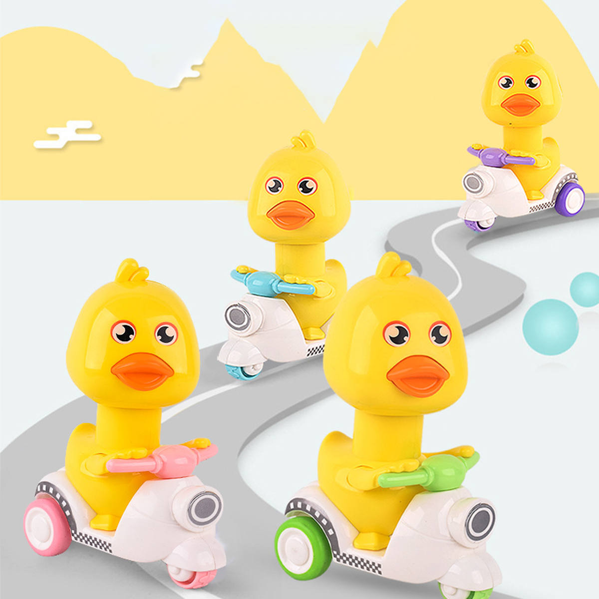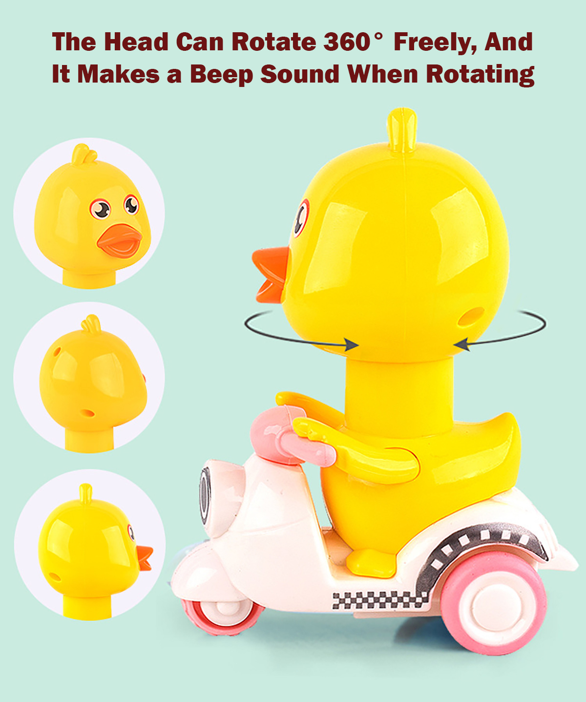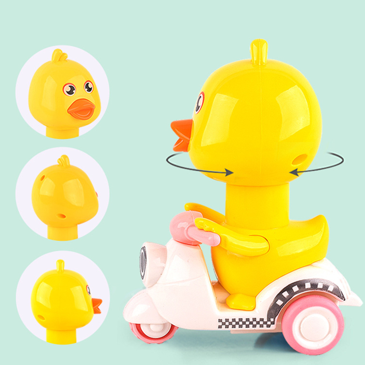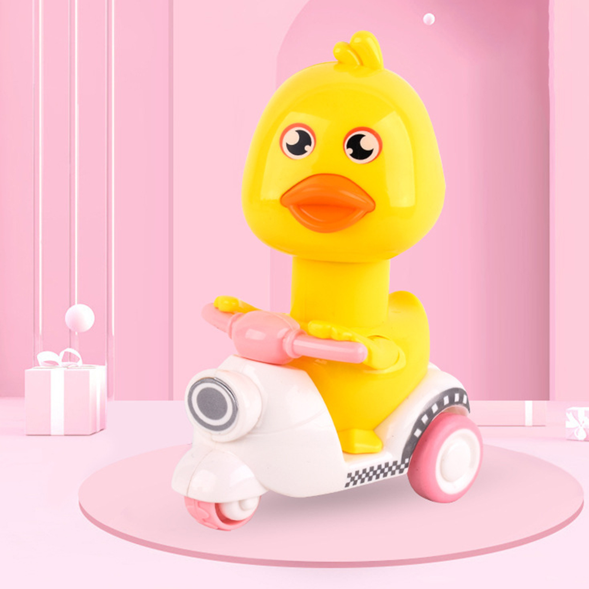 This is a kind of popular pressing motorcycle duck toy with various colors. Just press its head lightly and it will move forward. Rotating its head will make a sound, which is interesting. The material of this toy is sturdy, so you are not afraid that they are dropped by your baby. It will be a good partner for babies to learn to walk, suitable for ones over 18 months old.