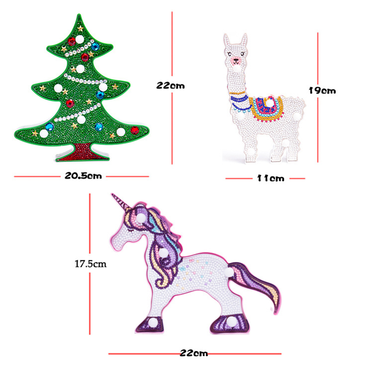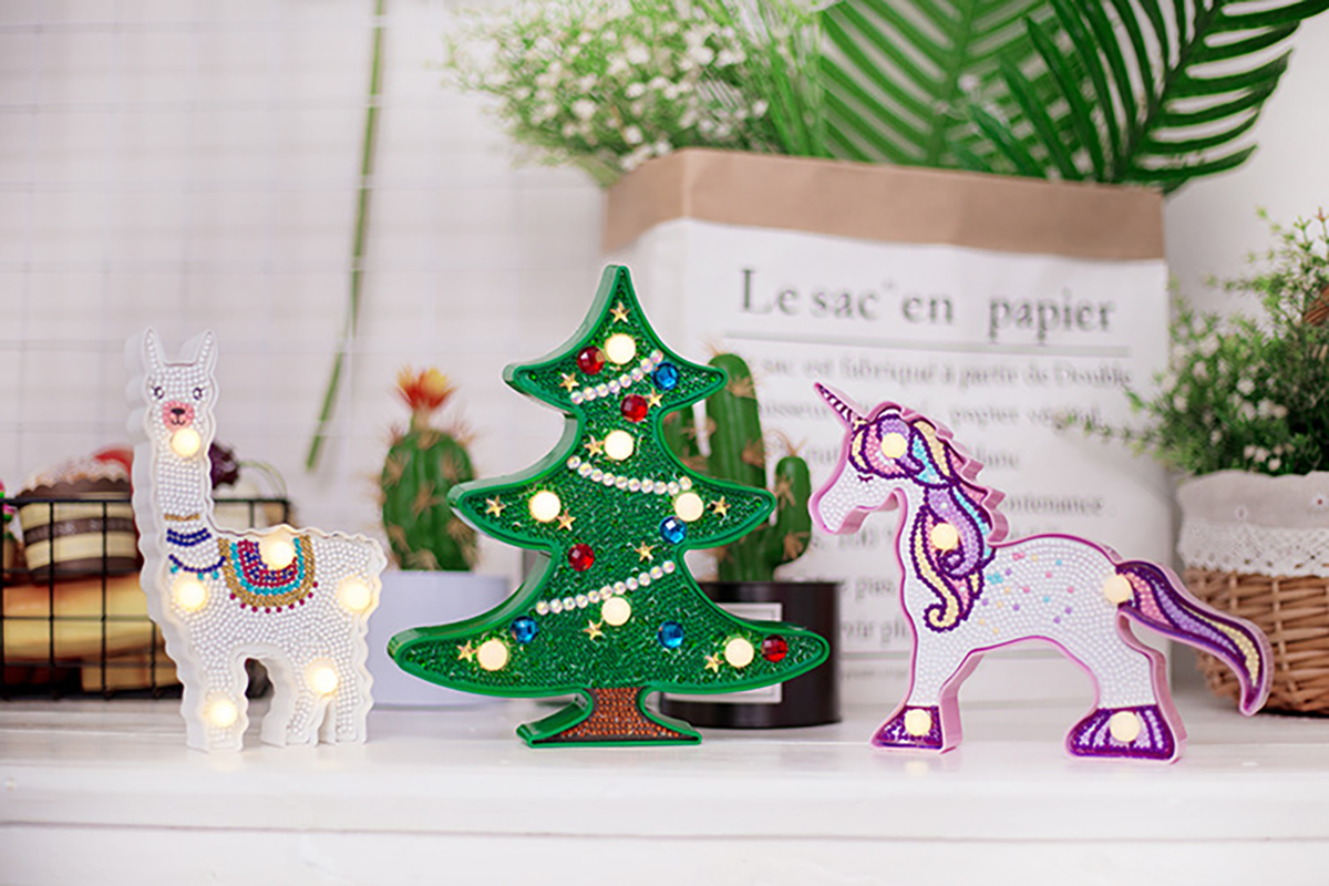 In the daytime, they are exquisite paintings, and each diamond shines beautifully. When night falls, the darkness will cover their beauty? Not really! The LED lights embedded in the painting will turn them into practical night lights, which will also shine in the dark night. Christmas trees, alpacas and unicorns, these dreamy images make them the best choice for gifts.
