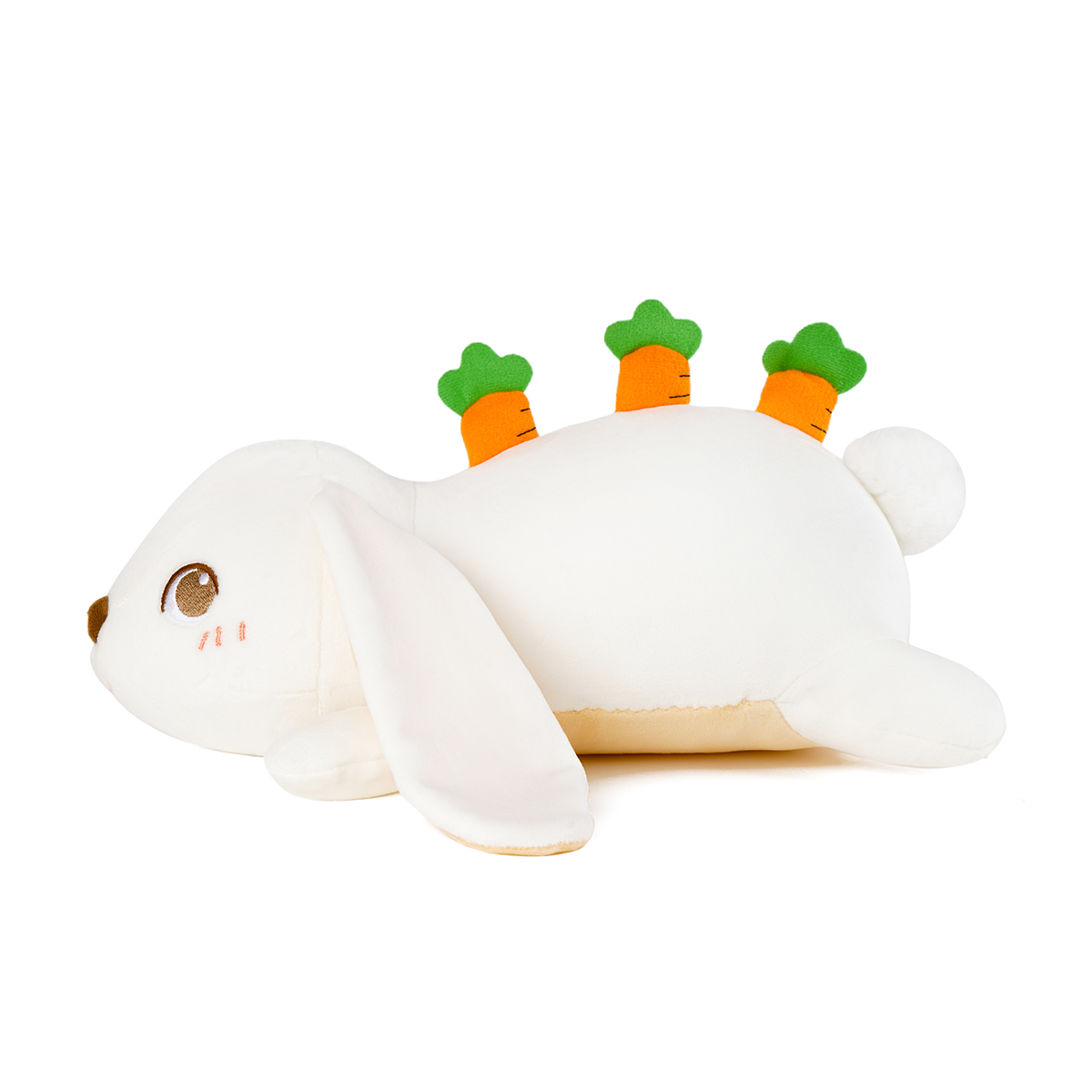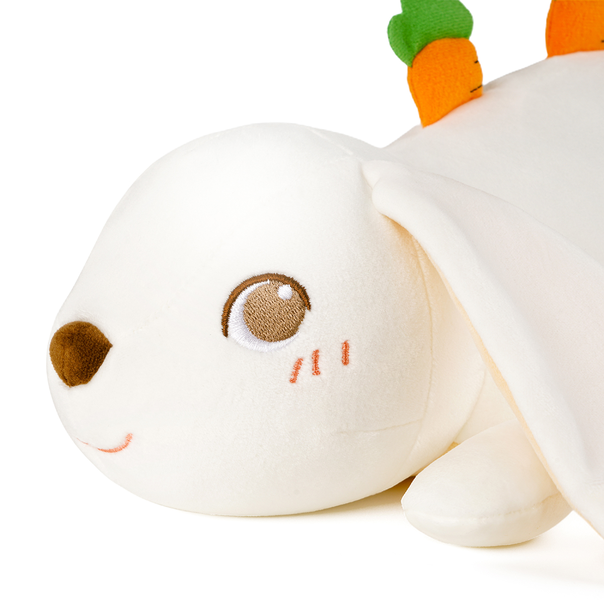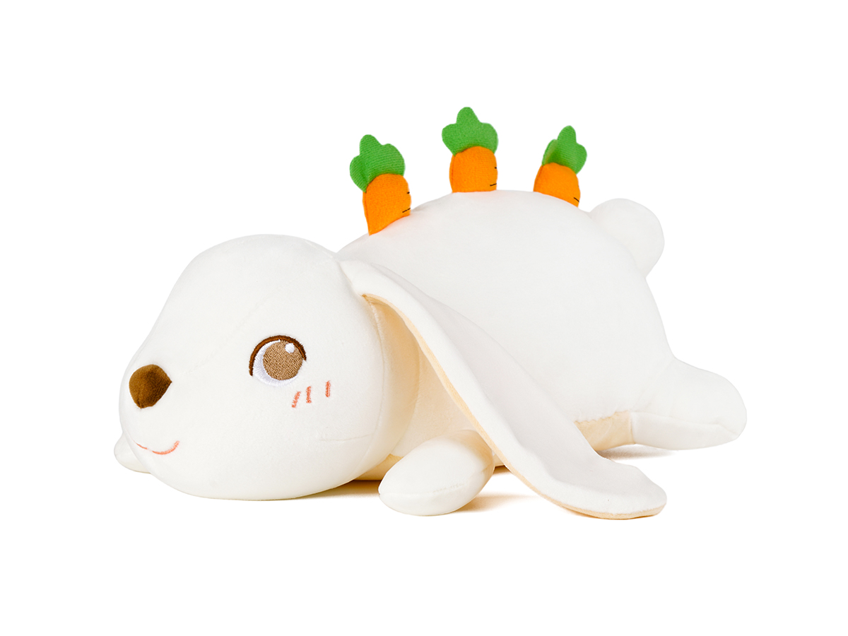 With long ears, snow-white soft body, and cute big eyes, this is a smart rabbit toy.! The appropriate size allows the baby to hug it in his arms, to feel its softy, and fall asleep at ease. The special feature of this toy is the addition of carrot elements to increase the richness of colors and also benefit to improve the baby's cognitive ability.