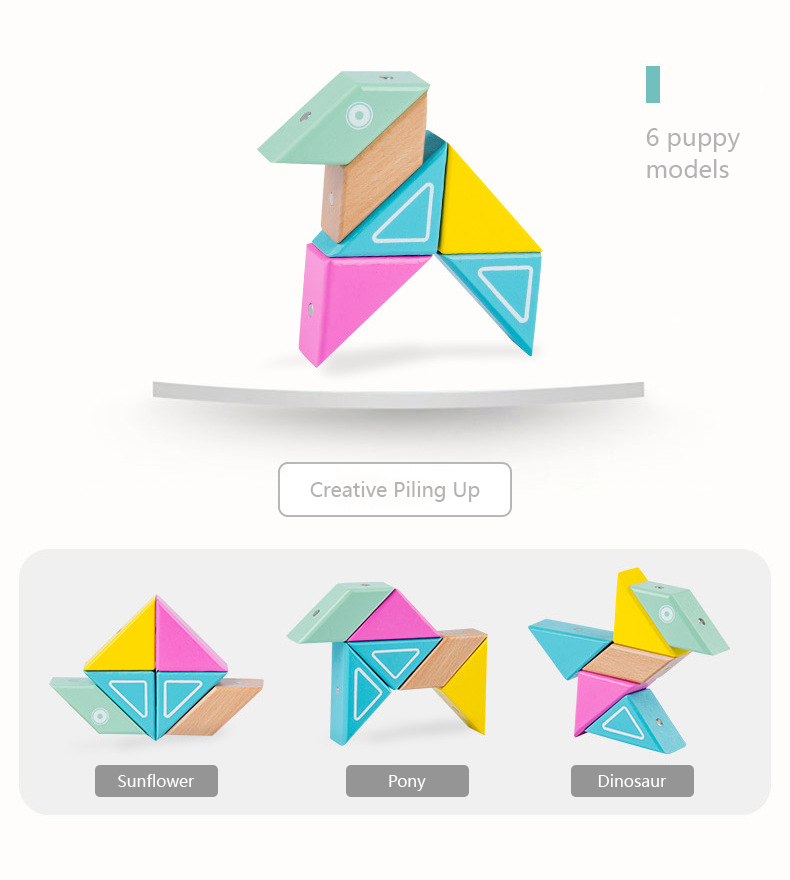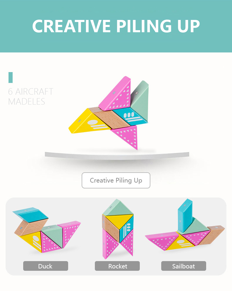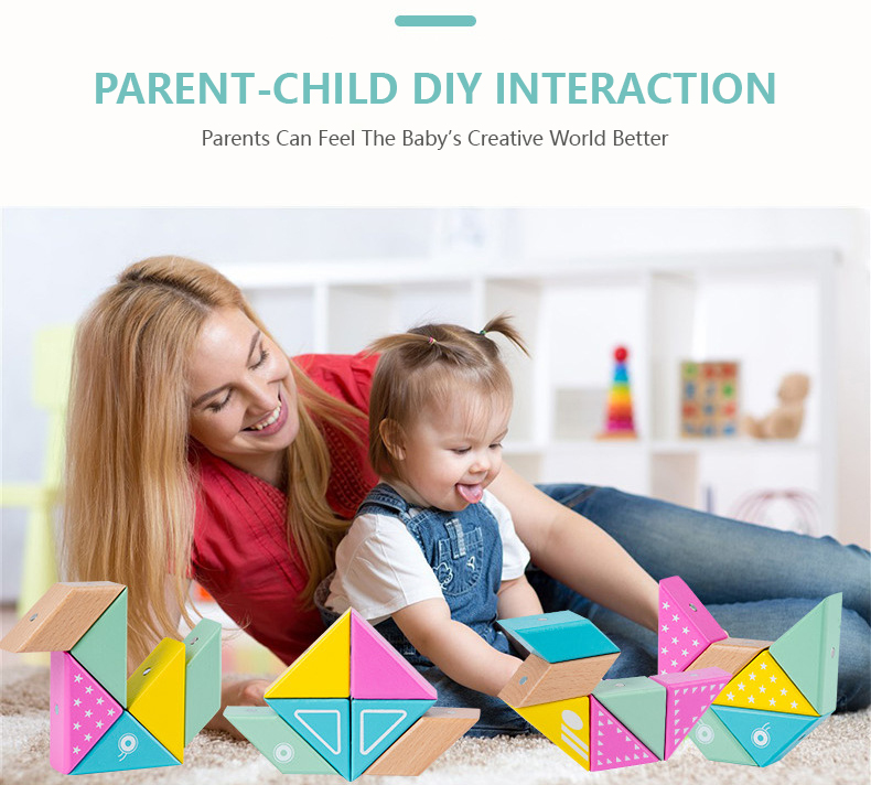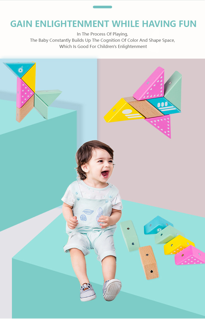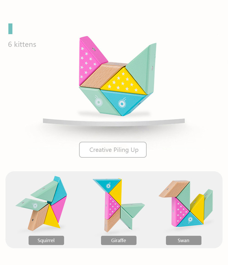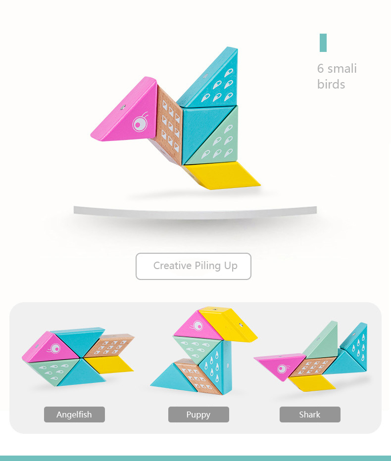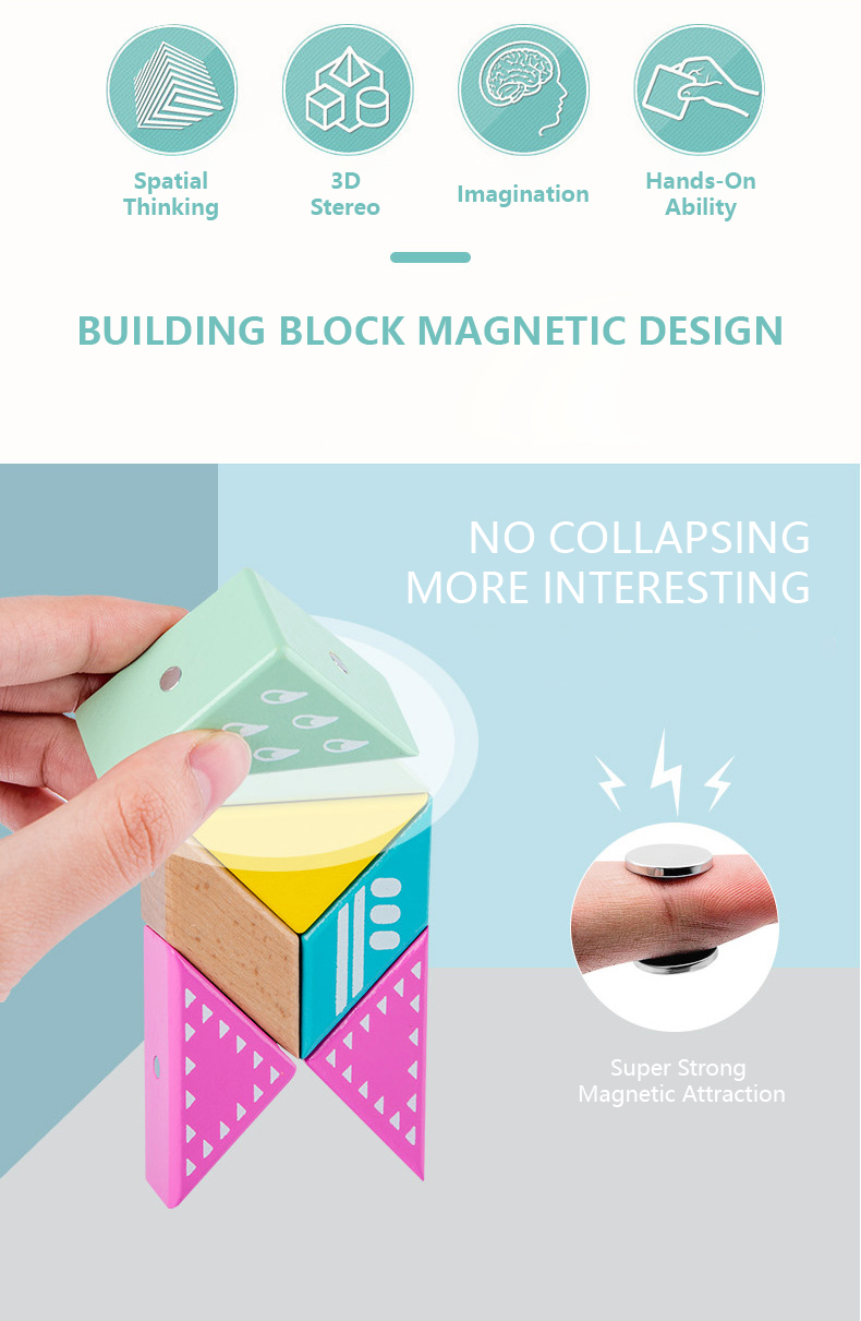 This building block has only six pieces with different colors. It is simple to put together and can easily create different shapes. Unlike traditional building blocks, it is embedded with magnets, which will not collapse and greatly attracts the baby's interest.