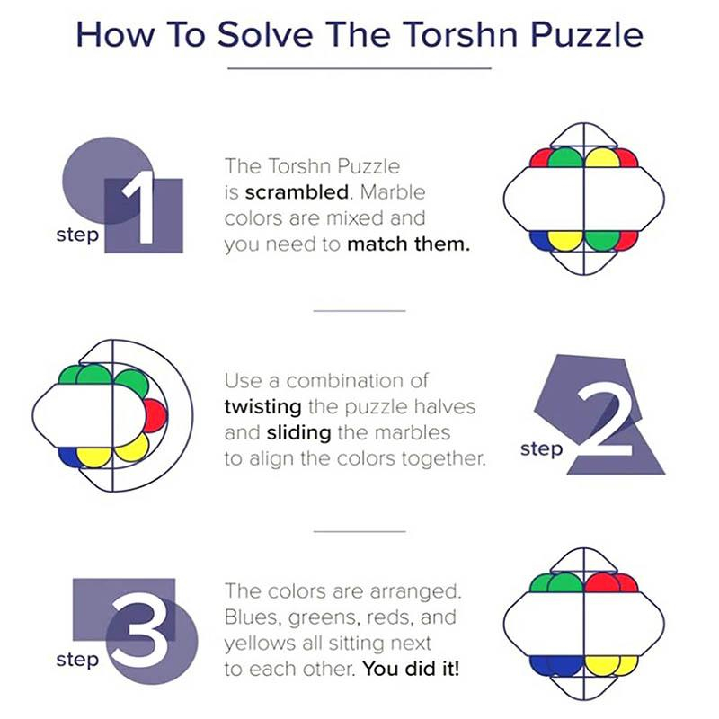 1.The Objective is Simple: Align the colors to each other by sliding and twisting the halves. Solving the puzzle may initially seem straightforward, but you will quickly find that it is trickier than it looks!