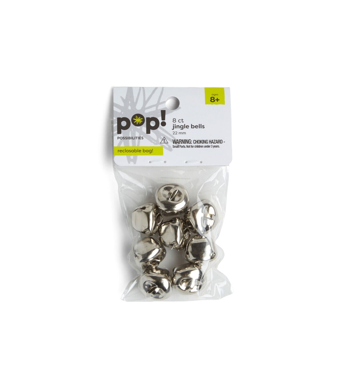The POP! Possibilities Jingle Bells - Silver will make a great addition to your kid’s craft supplies. This pack includes eight jingle bells in silver tone. Your kids can use them to make a lovely wreath for the front door, or candy cane ornaments and tie them to the Christmas tree with a red ribbon.
