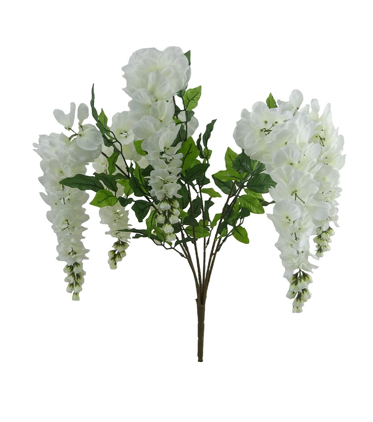 Add seasonal charm to your decor with the Bloom Room Wisteria Bush - White & Blue. It bears stunning wisteria vine flowers in white and leaves. This faux floral bush will look lovely when teamed with peonies, hydrangeas, roses and more in contrasting hues, and can be used to create a stunning floral centerpiece for the living room.
