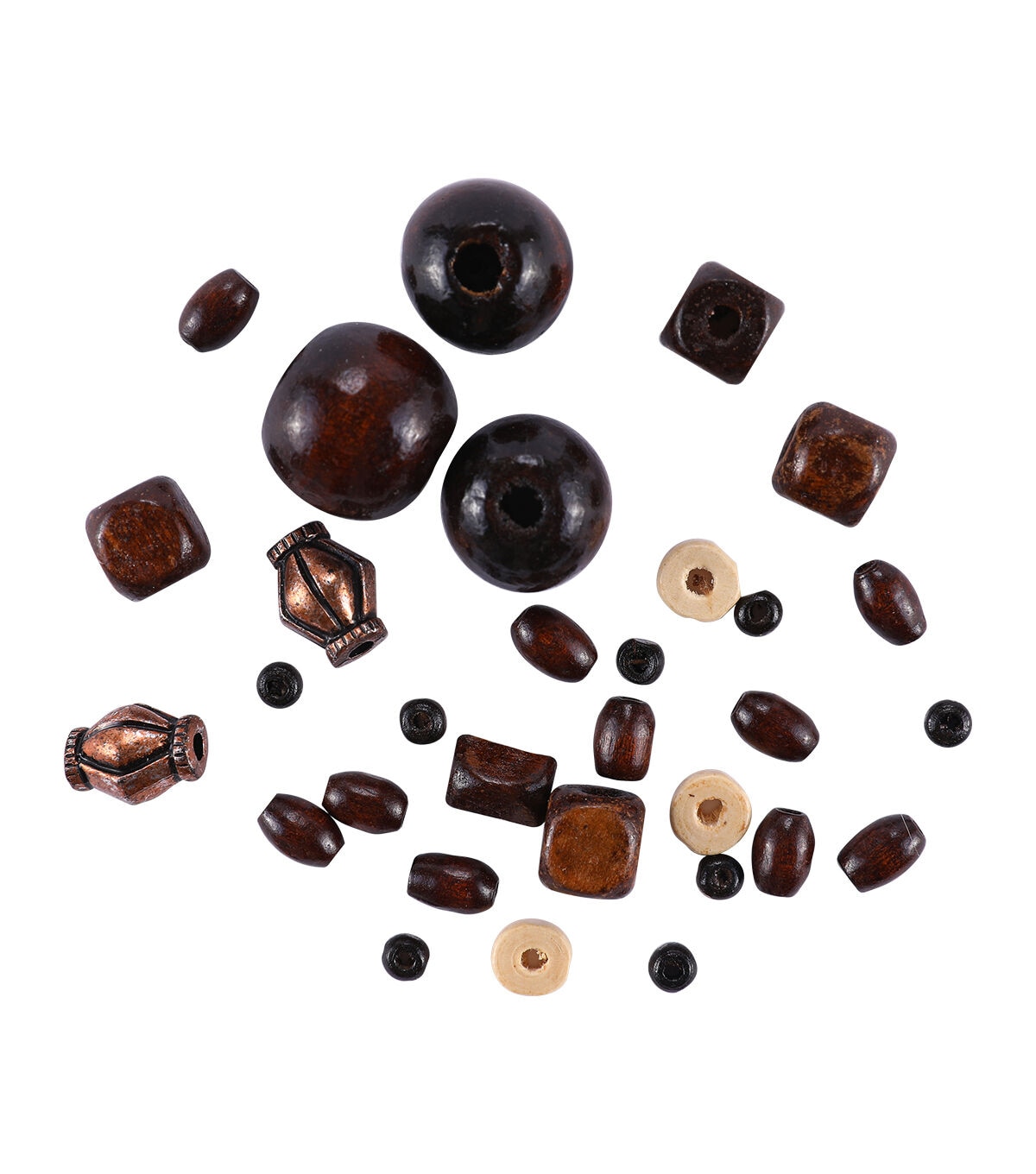 The hildie & jo Assorted Wood & Plastic Beads - Dark Brown will be perfect for a variety of jewelry designs. This pack includes an assortment of stained wood beads and plastic beads sporting a metallic finish. Team them with beads in coordinating hues to create necklaces, bracelets and earrings. You can also use them to embellish craft and decor projects.