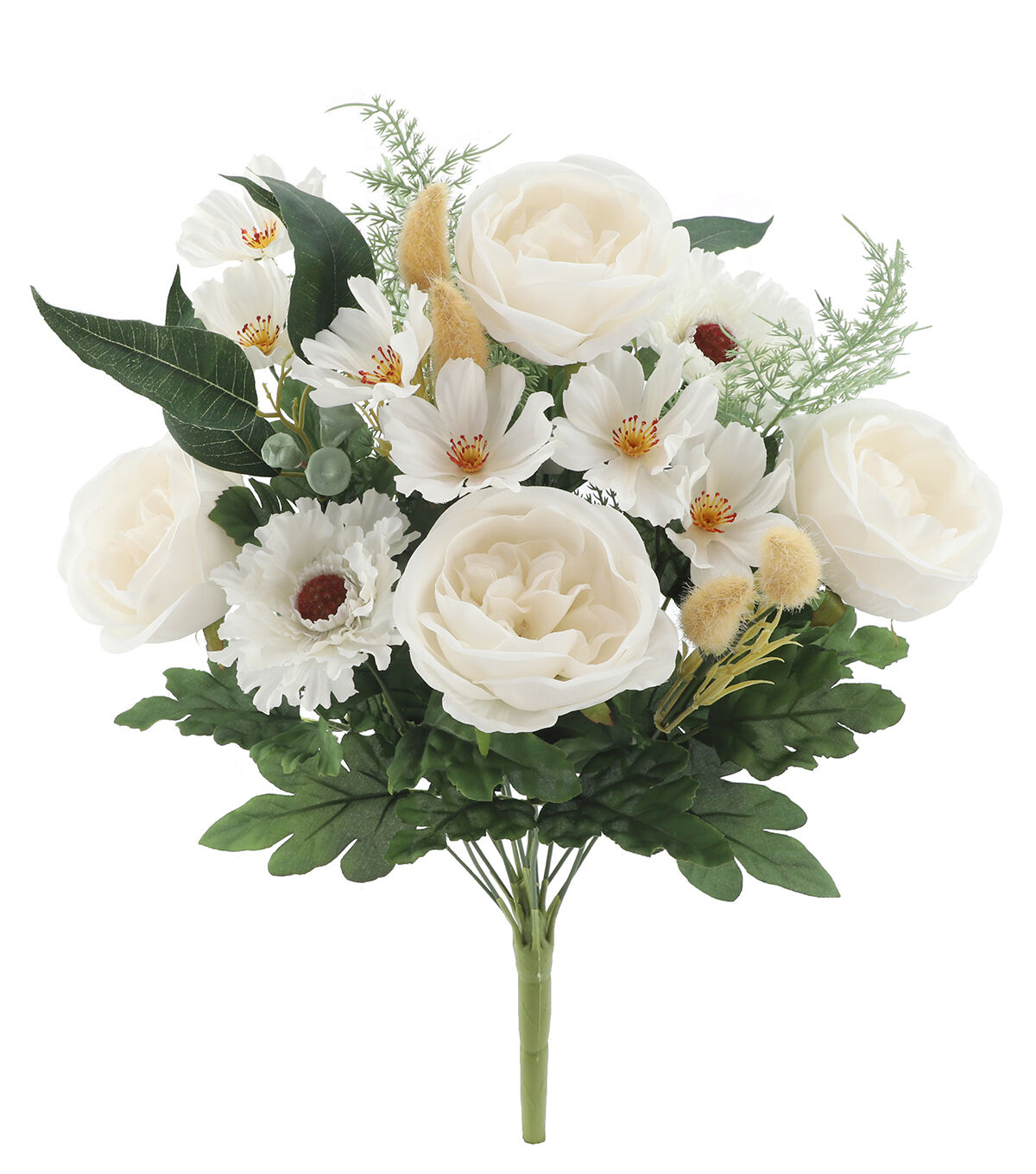 The Spring White Rose & Scabiosa Bush by Bloom Room will add elegance to your home decor. Designed with pretty roses and scabiosa blossoms, green leaves and bunny tail grass, this faux floral bush looks beautiful. Pop it into a clear glass vase along with greenery stems, sold separately, to create a delightful display.