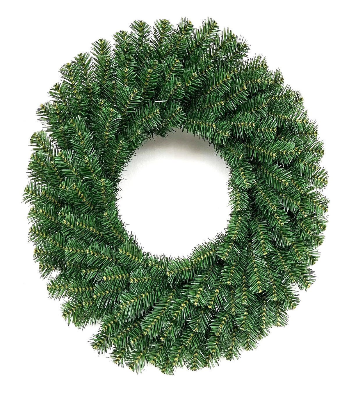 With a lush arrangement of pine needles sporting a green hue, this lovely faux wreath is sure to bring home some charm. Adorn it with string lights for added appeal.