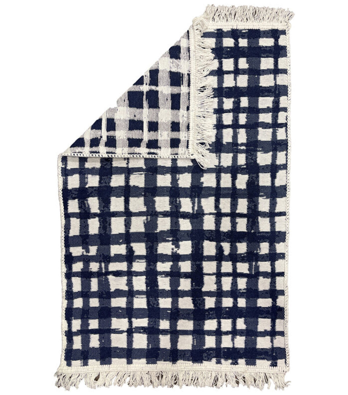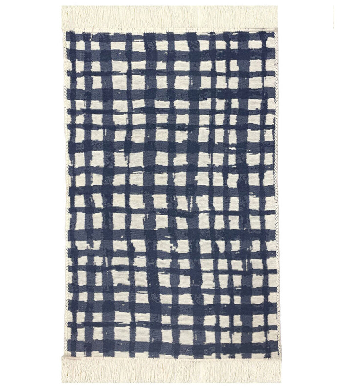 Create a cozy corner anywhere in your home with the Spring Navy & White Woven Rug by Place & Time. It sports a checkered pattern in navy blue and will complement all modern home decor themes. The fringes along two sides add to its charm. Team this rug with a pair of cushions to complete the setup.