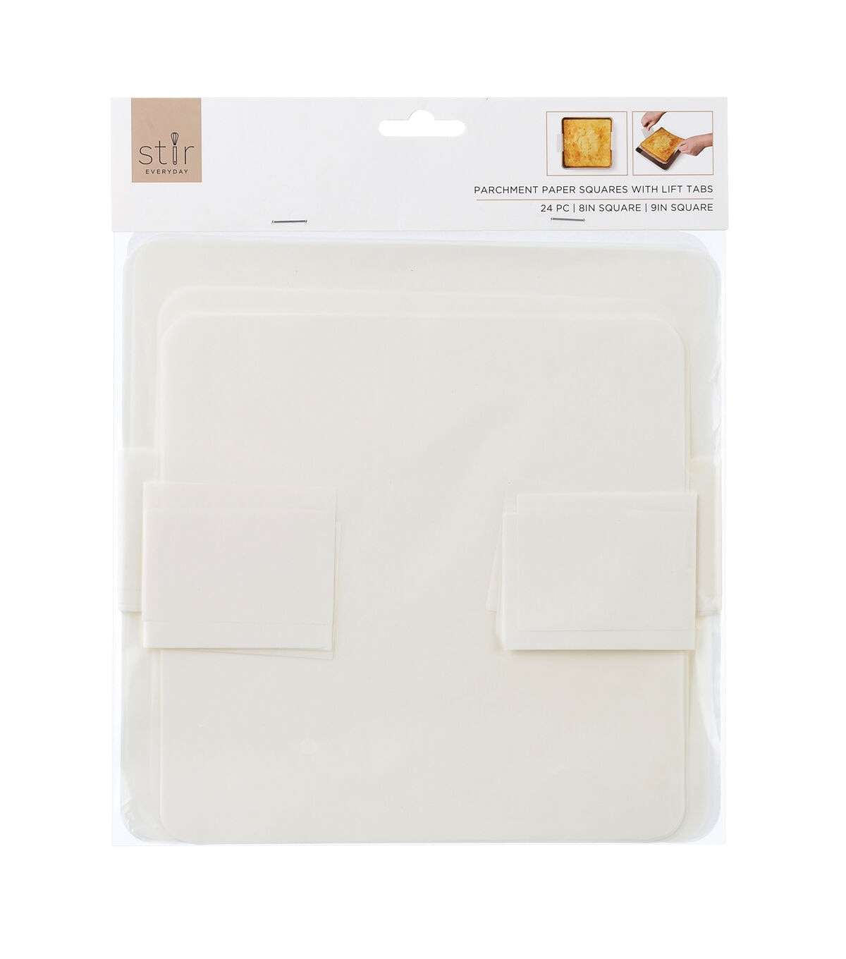The STIR Everyday Pre-cut Square Parchment Paper with Lift Tabs will make baking a breeze. These square parchment sheets come with tabs on two sides that help you easily lift cakes from the baking pan. They can also be used when baking bread, pies, cheesecakes and more. This pack includes 24 parchment sheets in two sizes.