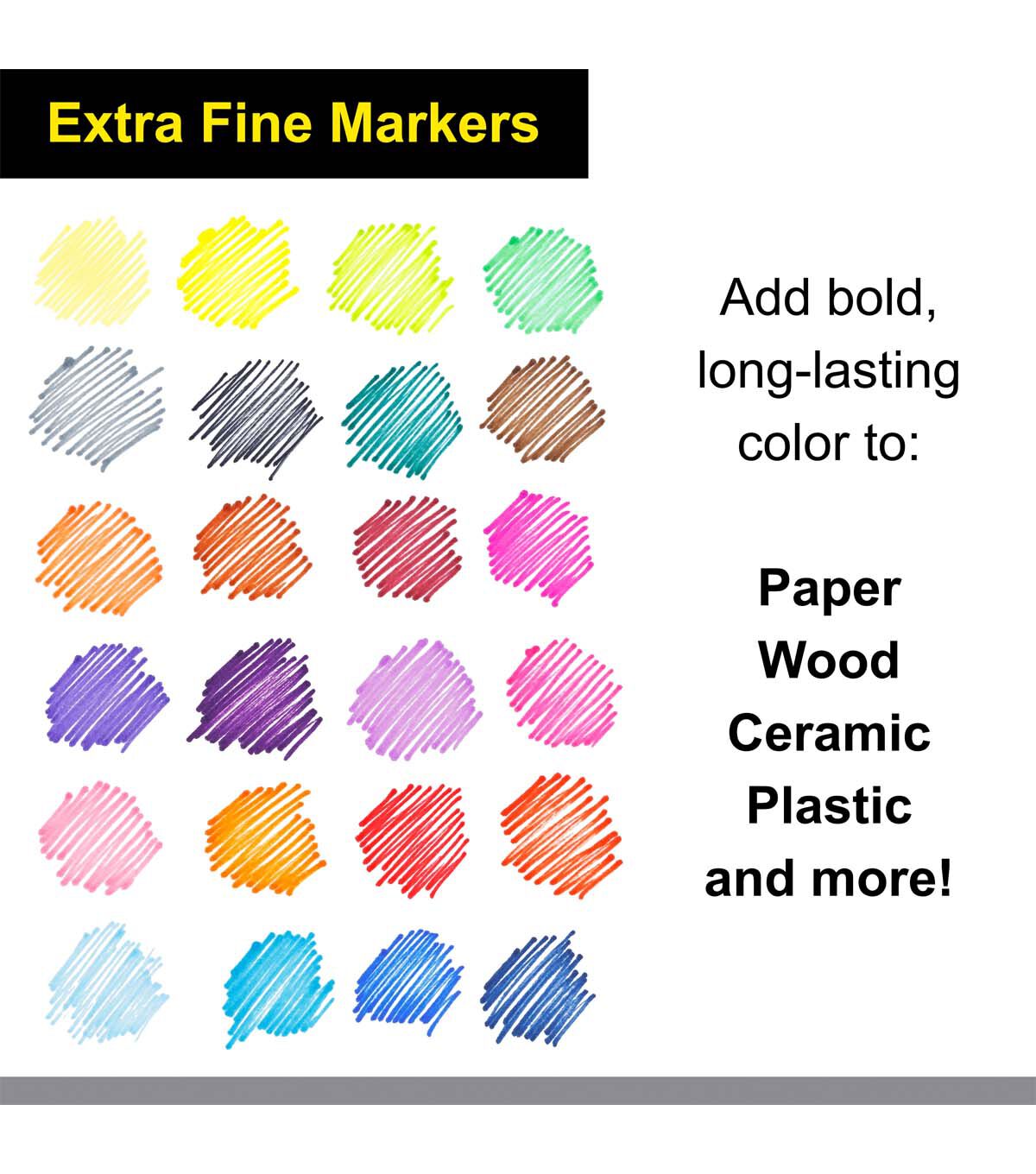 Ideal for art, crafting, home and office, these markers work well on paper, wood, ceramic, metal or plastic. The alcohol-based ink is water-resistant and permanent. They are durable and provide bold, long-lasting color, great for everyday use or for art projects.Alcohol-based ink is water-resistant and permanent
