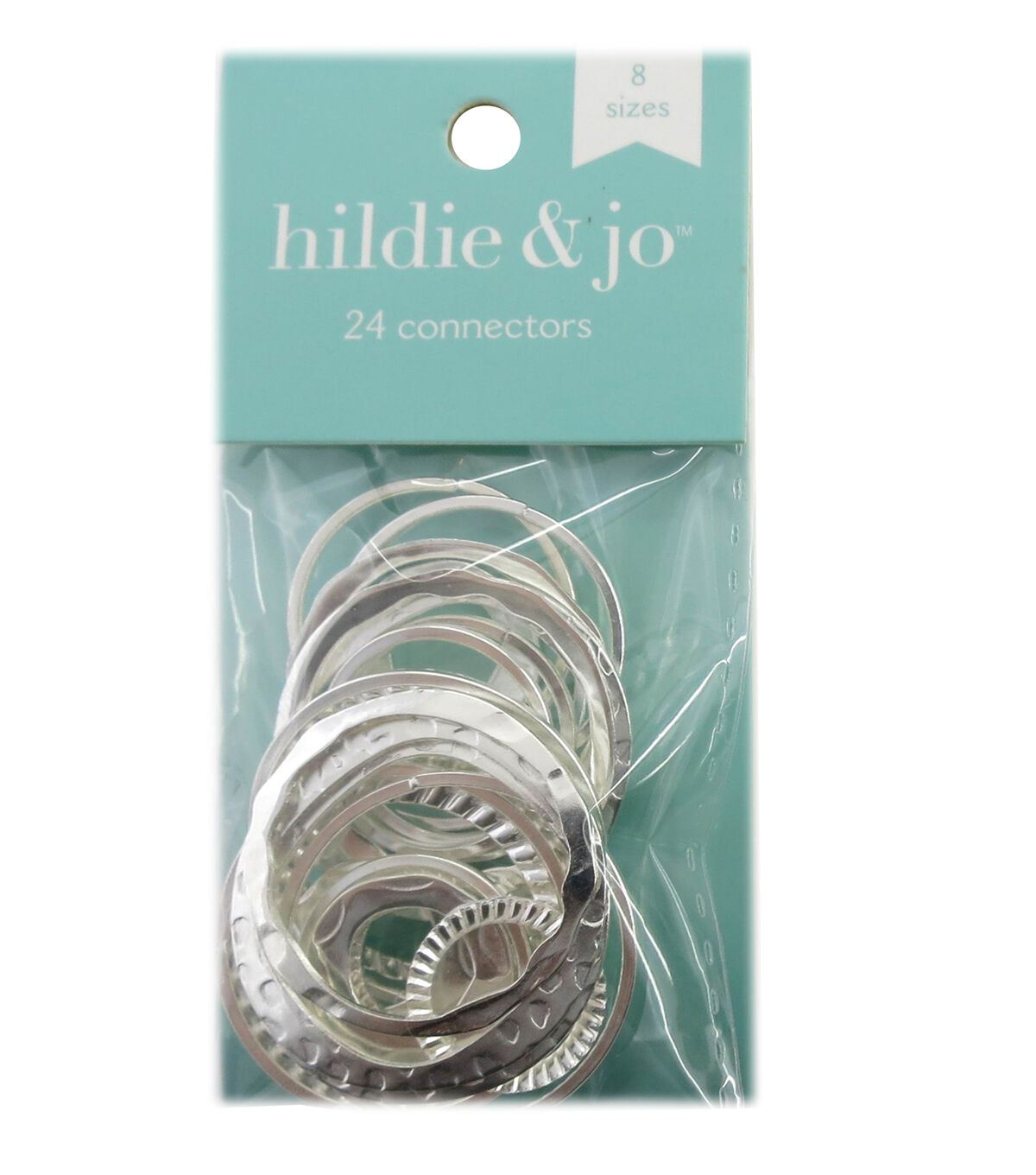 The hildie & jo Circle Connectors-Silver come with links in a variety of shapes and sizes for you to choose from. Some are smooth and some patterned, and they all sport a lovely silver finish for an elegant look. The pack contains 24 iron jewelry connectors.