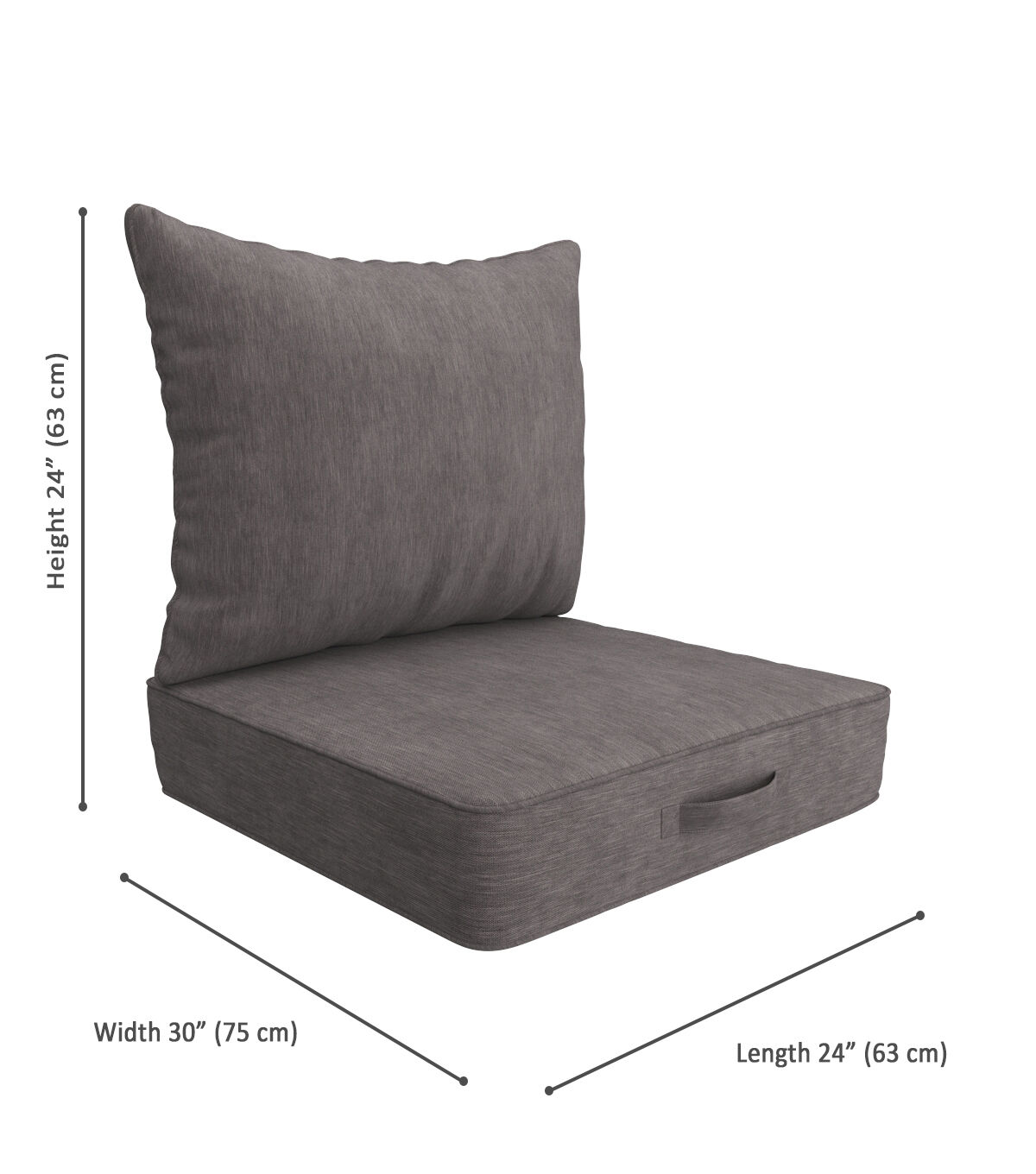 - Dimensions: Bottom Seat - 25" x 25" x 6", Seat Back - 27.5" x 22.5" x 9"