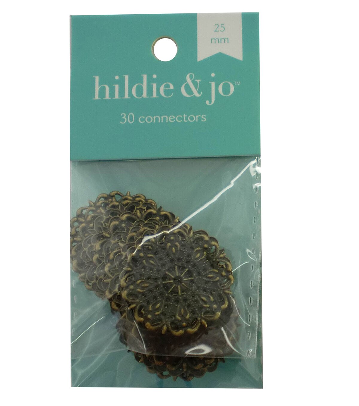 25mm Oxidized Brass Round Metal Filigree Connectors 30ct by hildie & jo
