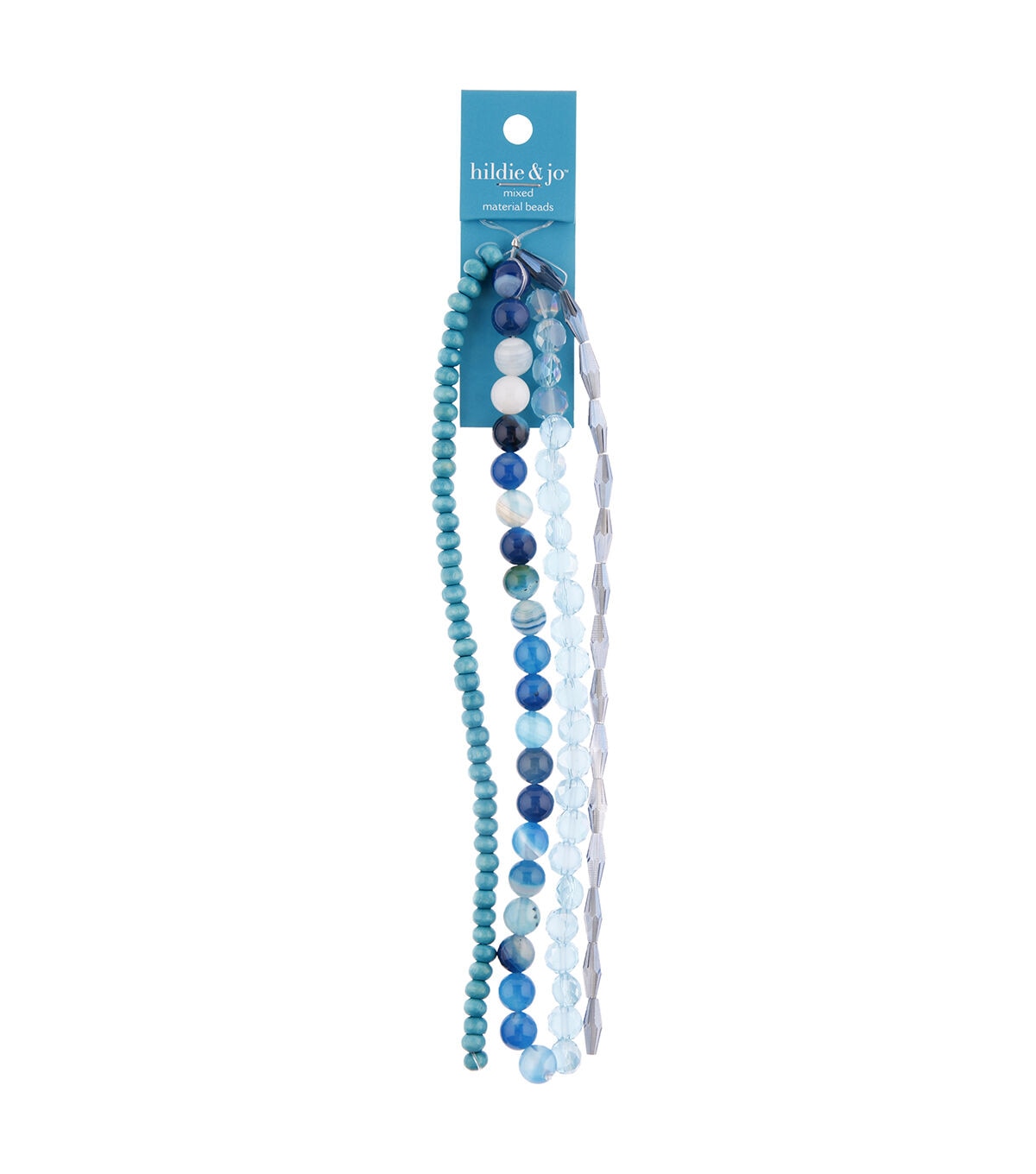 Enhance your jewelry designs by using the hildie & jo Multi Strand Mixed Material Beads - Blue. This pack includes multiple strands of glass, agate and wooden beads in various shades of blue. Use them to create one-of-a-kind necklaces, bracelets, anklets, bag charms, earrings, keychains and much more.