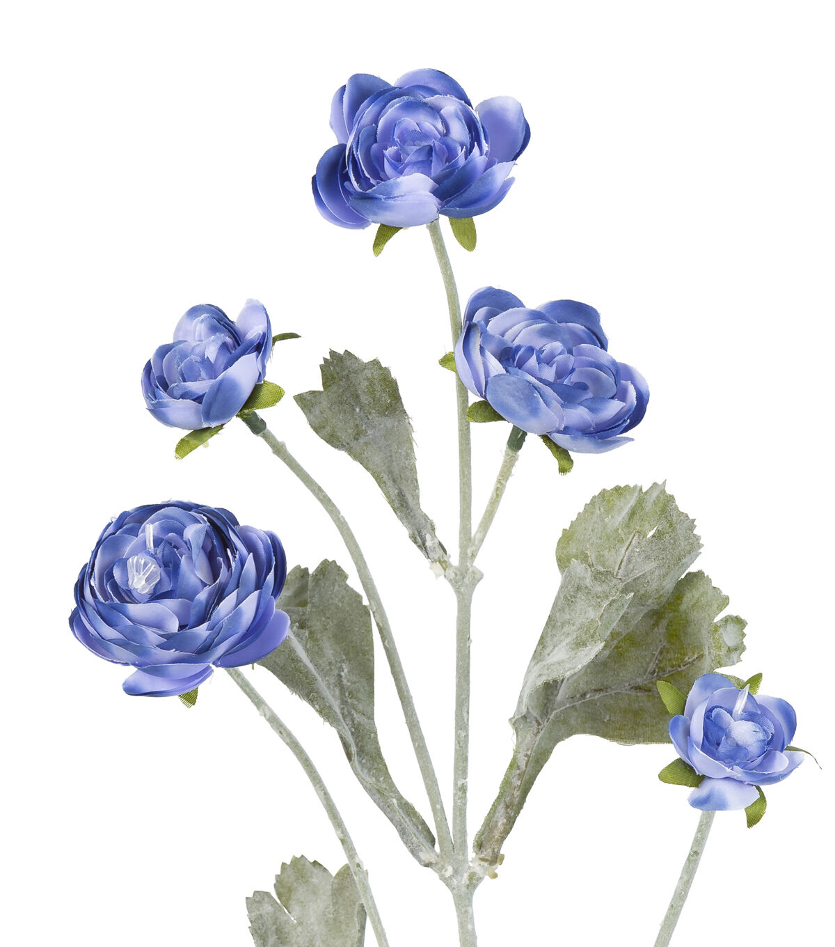 Add a lovely floral touch to your home decor with the Bloom Room Ranunculus Spray - Blue. This faux floral spray bears ranunculus flowers in a soothing shade of blue and leaves. Pop it in a ceramic vase, and display it as is for visual charm. You can also trim it with tiny string lights.