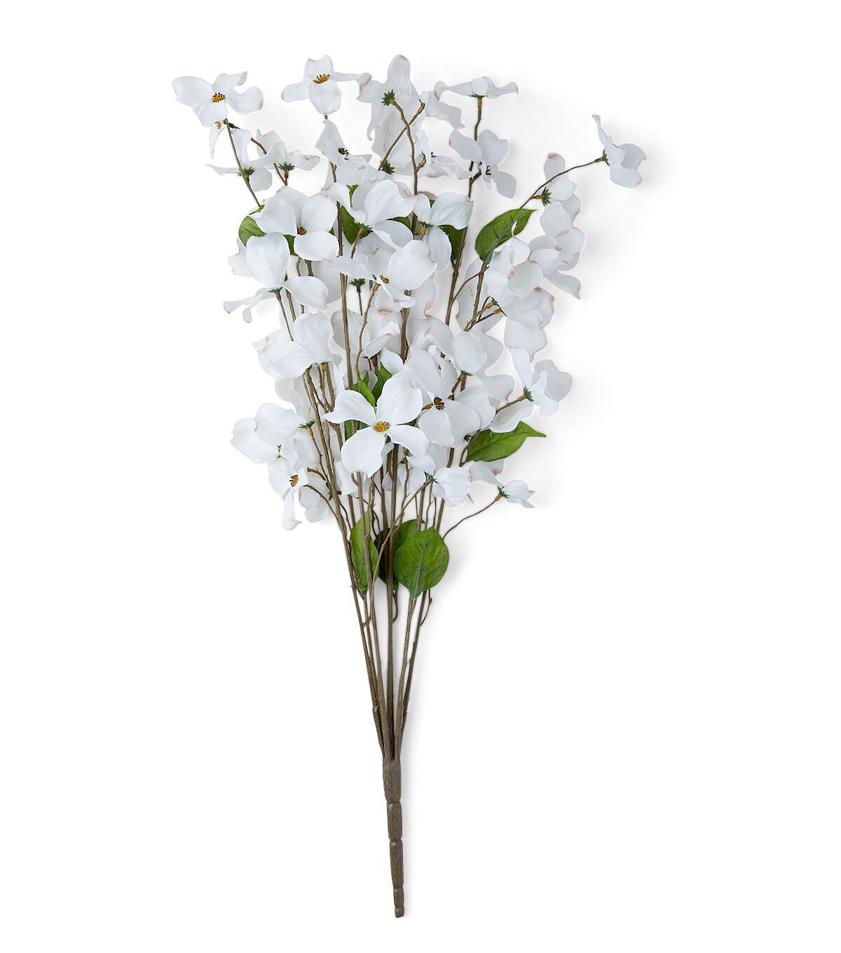 The Spring White Dogwood Bush by Bloom Room will perfectly complement your minimalistic spring home decor. This faux floral bush is made of dogwood blooms in white and leaves in green. You can showcase it as is on the center table or team it with pastel-hued floral stems to create a beautiful display for the mantel.